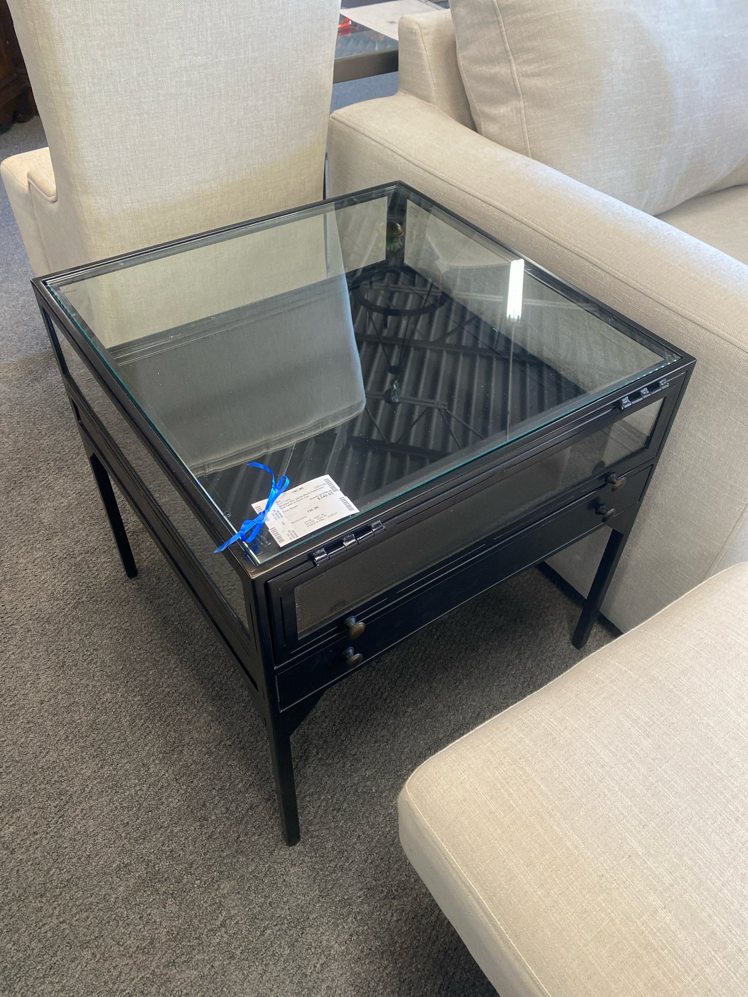 Shadow Box 24x24 Black Finish Iron End Table w Glass Top
