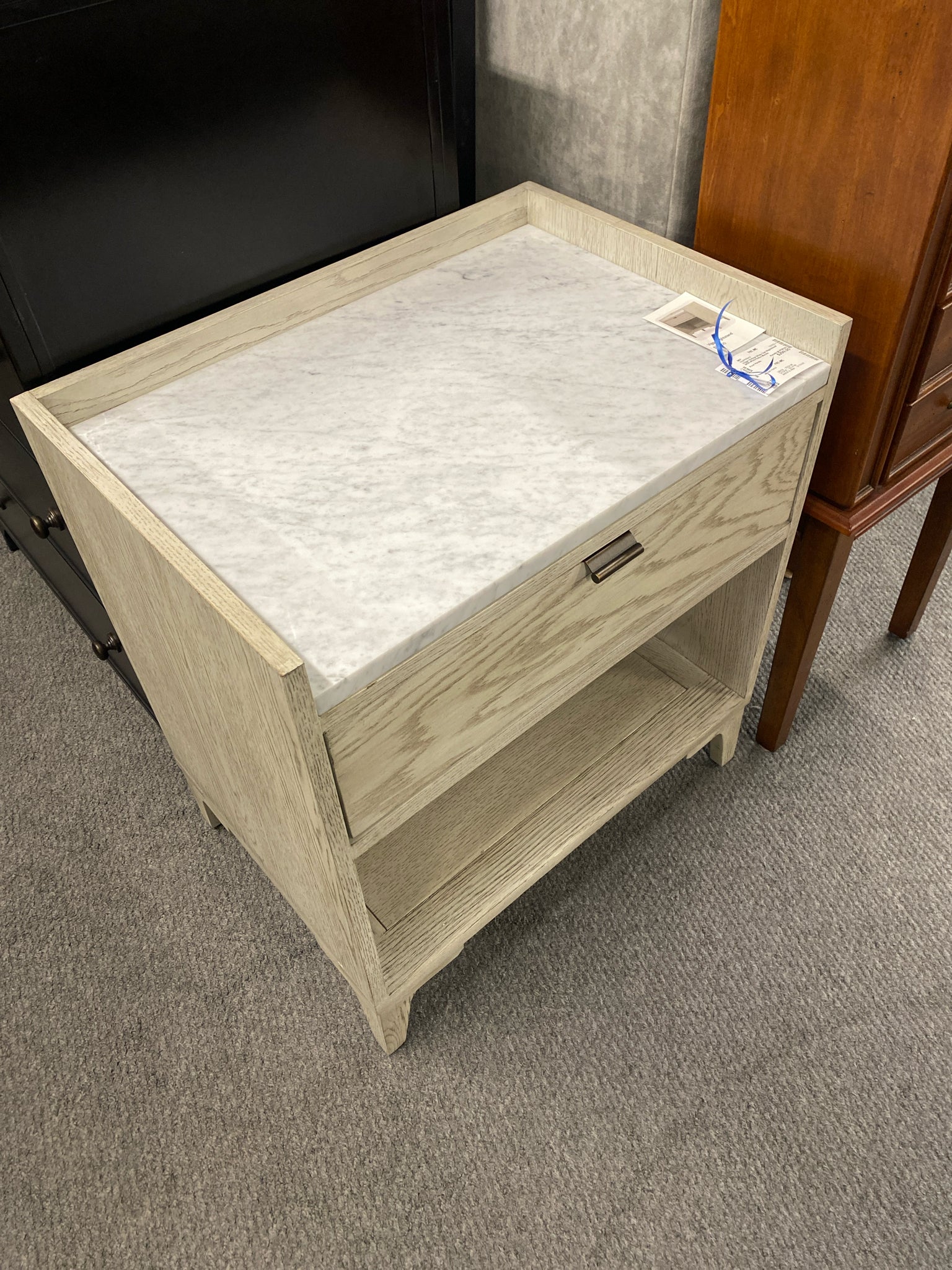 Viggo Vintage White Oak Nightstand With White Italian Marble