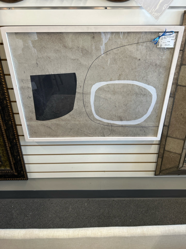 32" x 24" White Wash Framed Black, Taupe, and White "Comfort" By Dan Hobday
