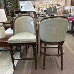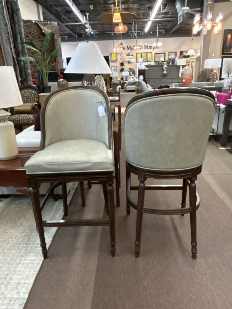 SET/2 "Savoy" Swivel Barstool in Dark Wood W/ Grey Leather Seat
