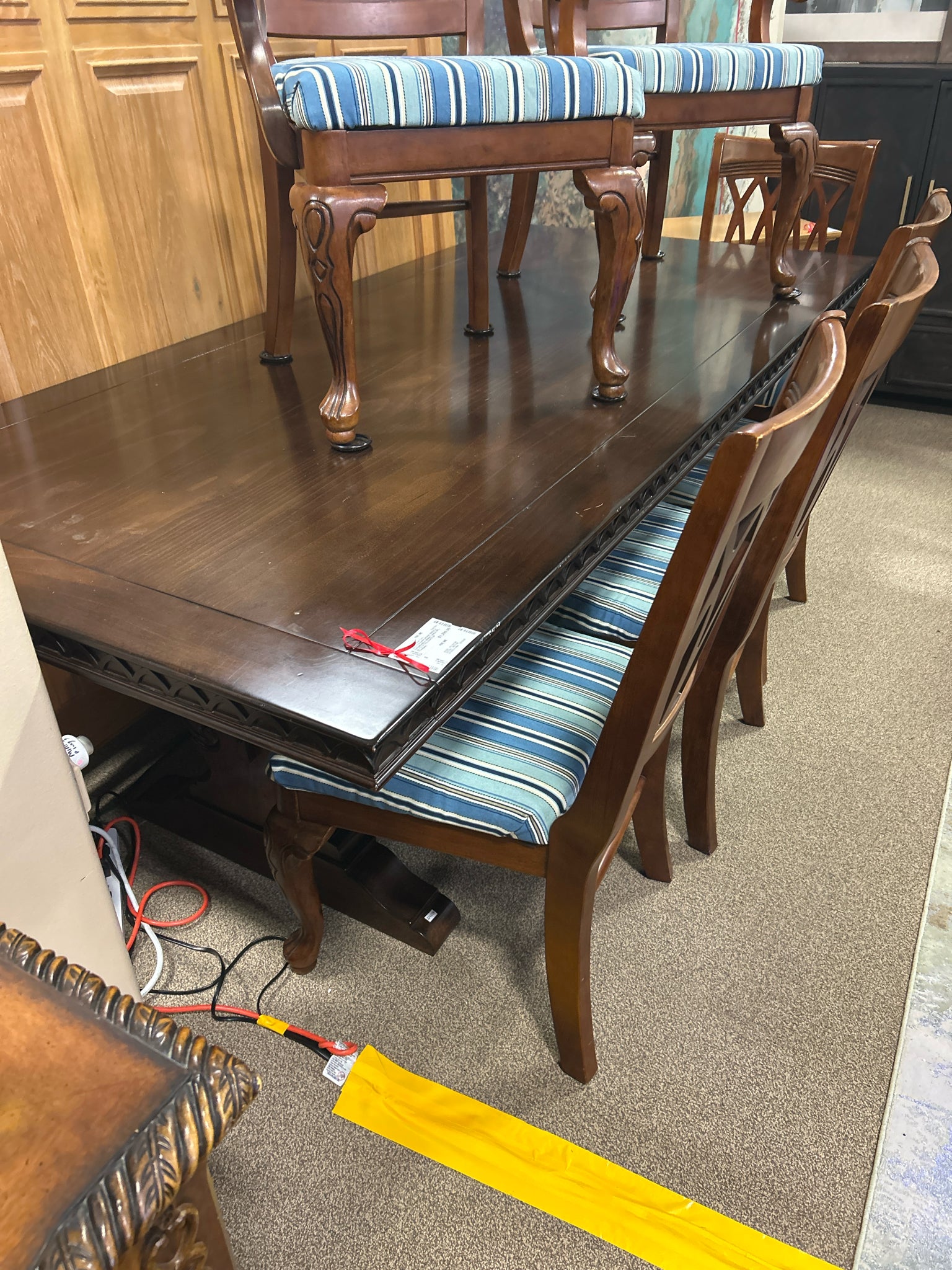 VALETTA-DARK WOOD TRESTLE EXPANDABLE DINING TABLE 93"L 42.7"D 31"H-2-LEAFS 20"