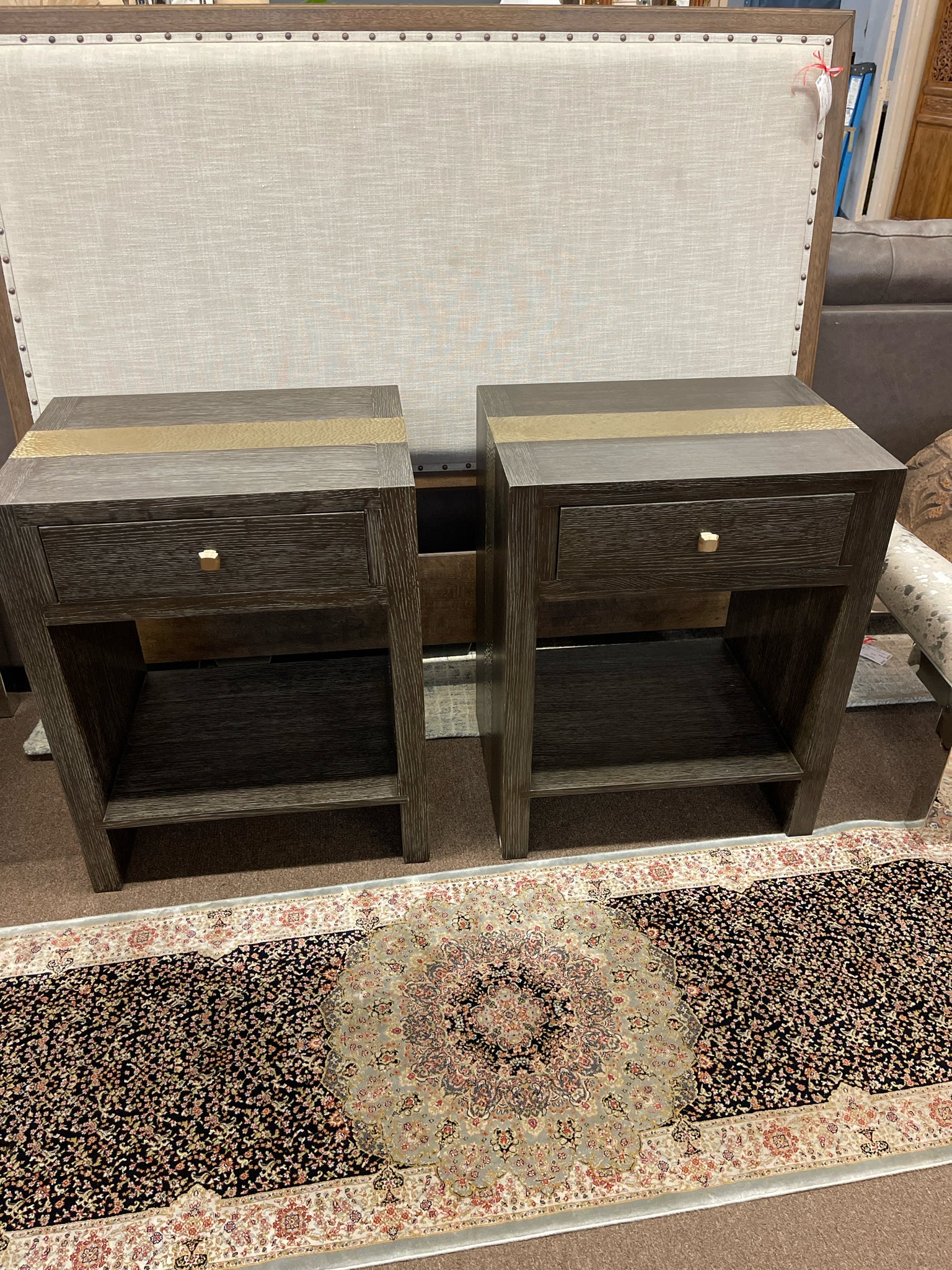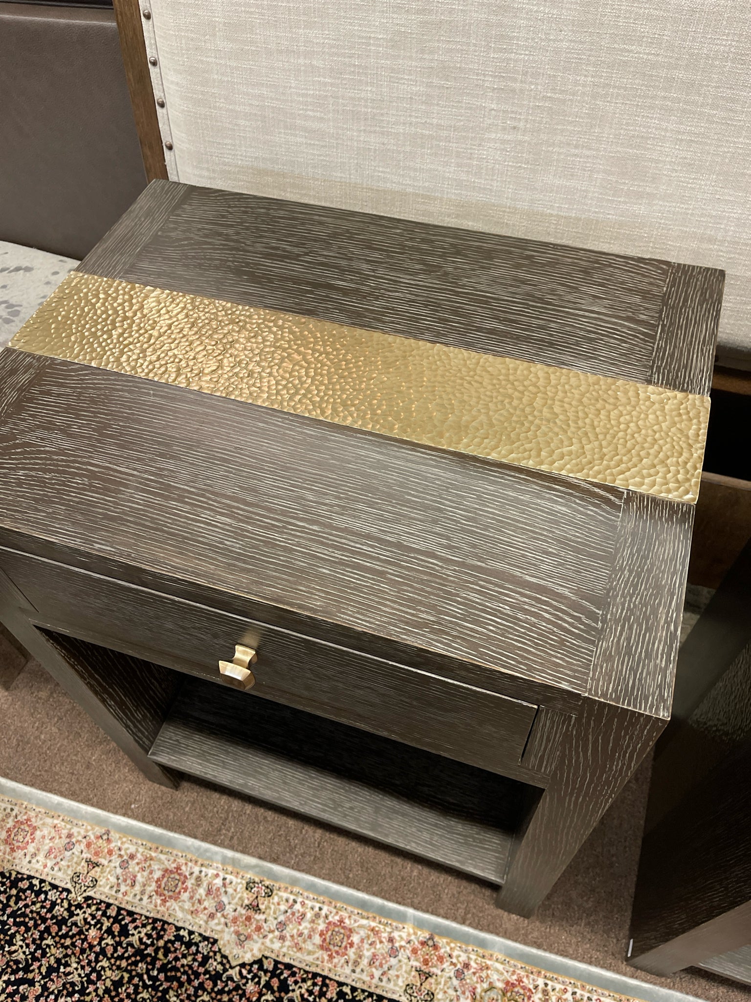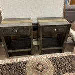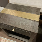 (AS IS) SET/2 Dark Wood W/ Hammered Brass Accent 1-Drawer Nightstand