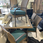 7 Piece Outdoor Dining Set With Blue Cushions 64x40