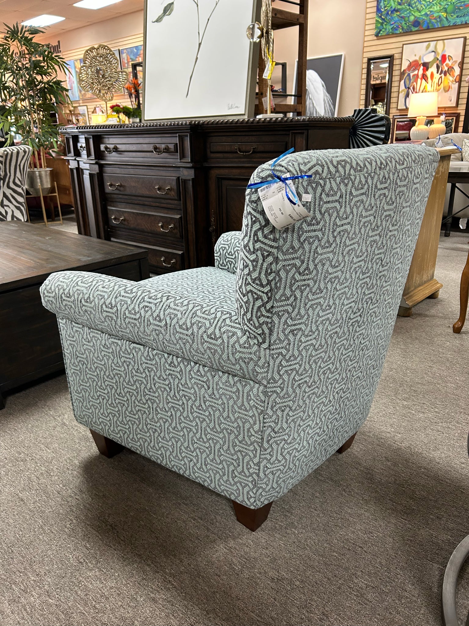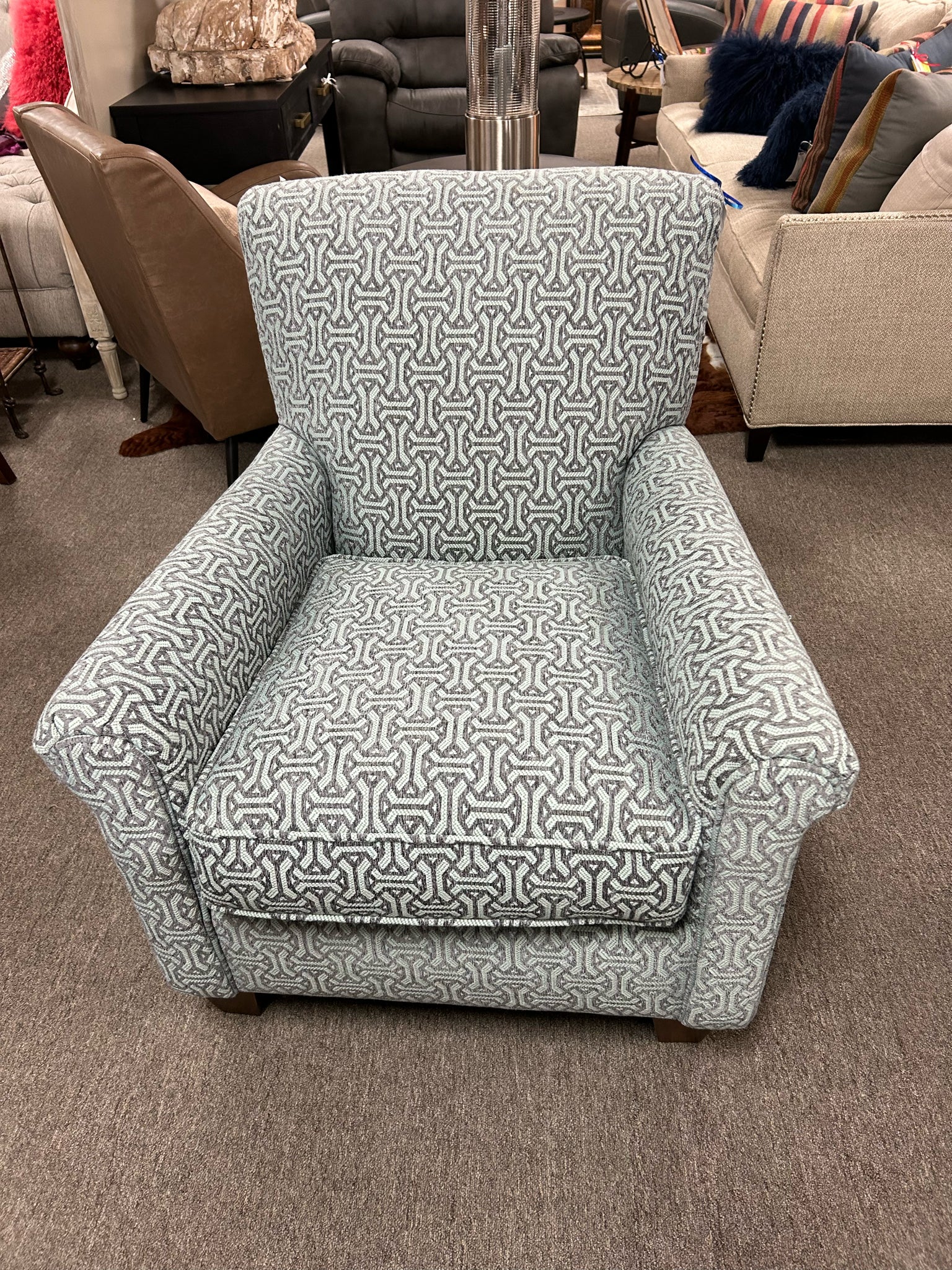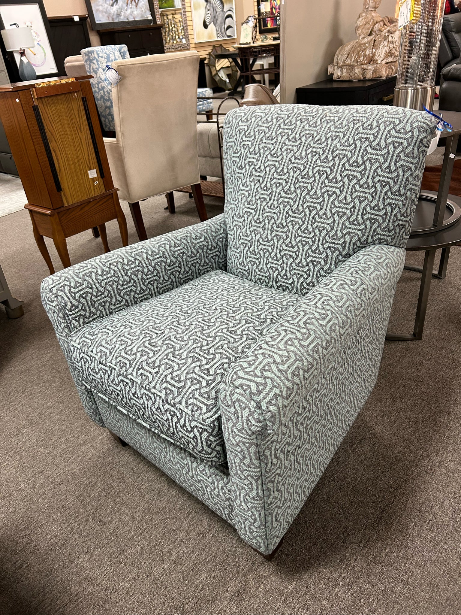 Blue/Cream Abstract Fabric Club Chair
