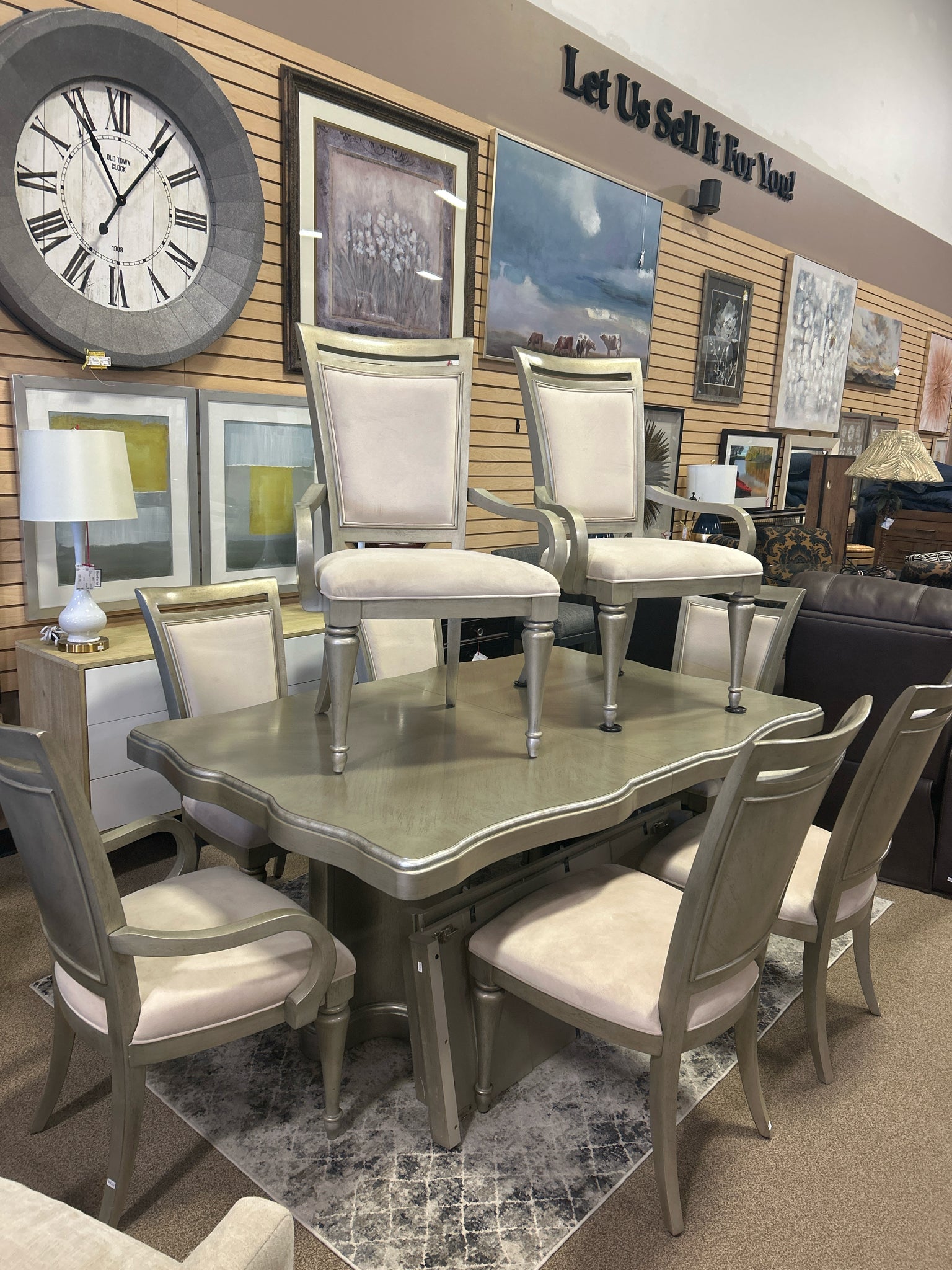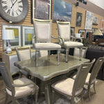 Silver Dining Table with 8 Chairs With 2- 18" Leaves 69x45