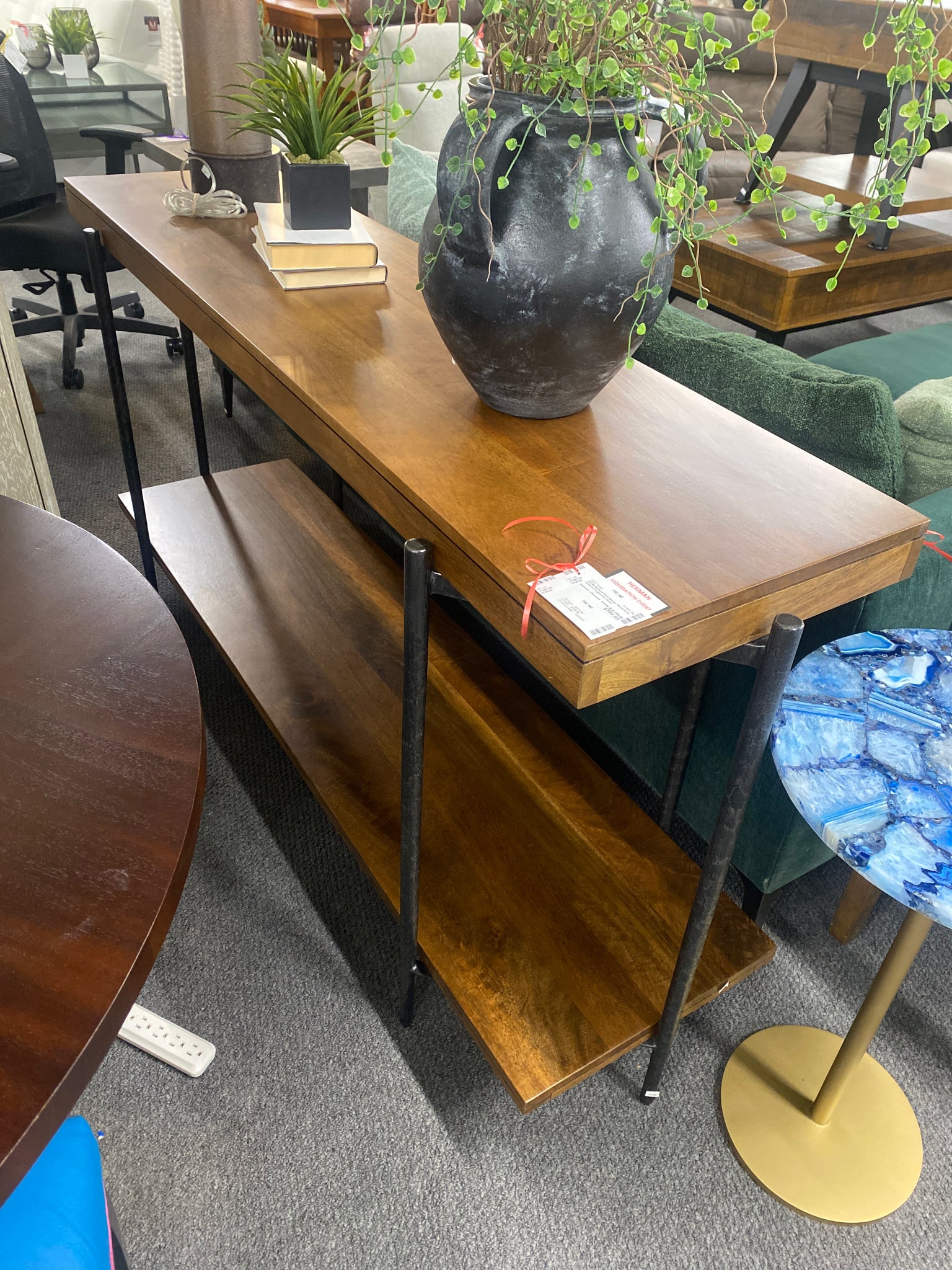 23708 Bedford Park Mango Wood Sofa Table w Forged Iron Base