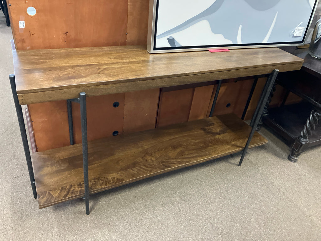 225807-BEDFORD PARK NATURAL WOOD SOFA TABLE W/METAL LEGS 65"W 18"D 32"H