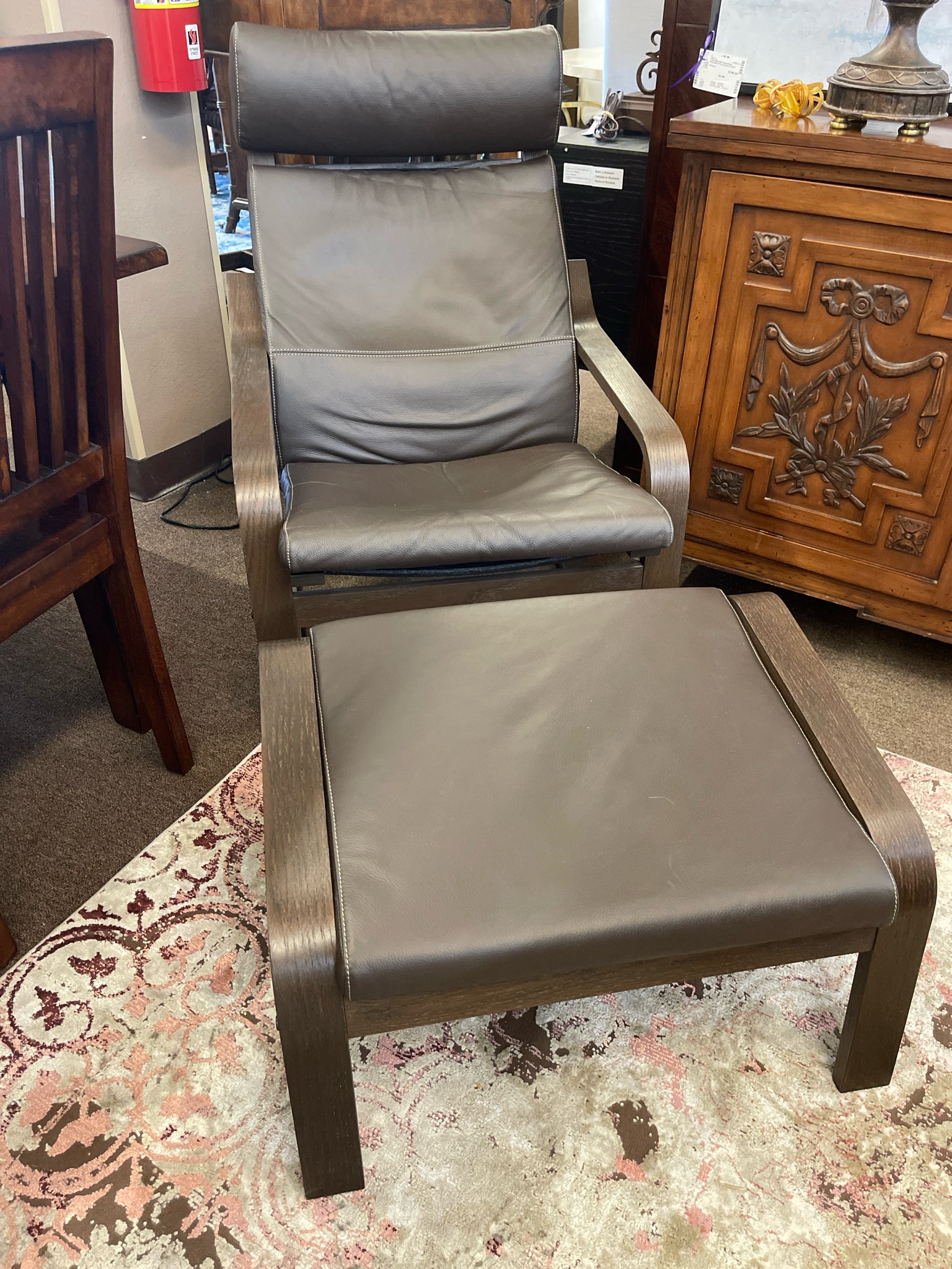 Set of 2 Poang Chocolate Leather Arm Chiar & Ottoman