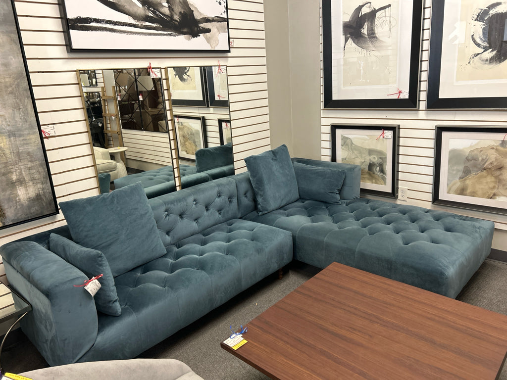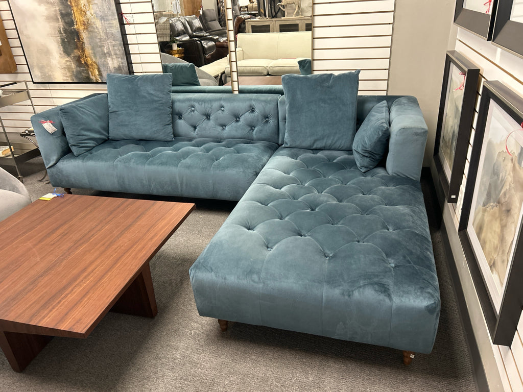 106" Blue Chesterfield Sofa/Chaise with Turned Tapered Legs