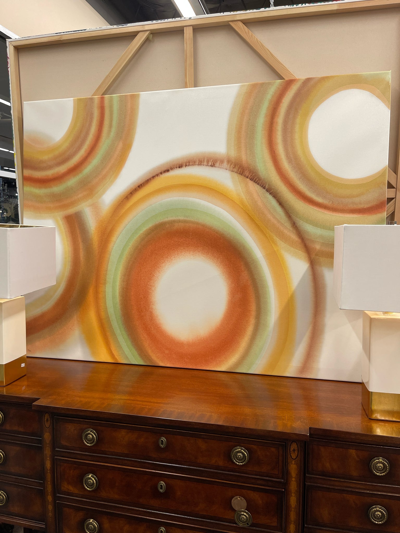 Abstract Circles in Shades Of Rust, Lime, Mustard & Creme 48" x 64"