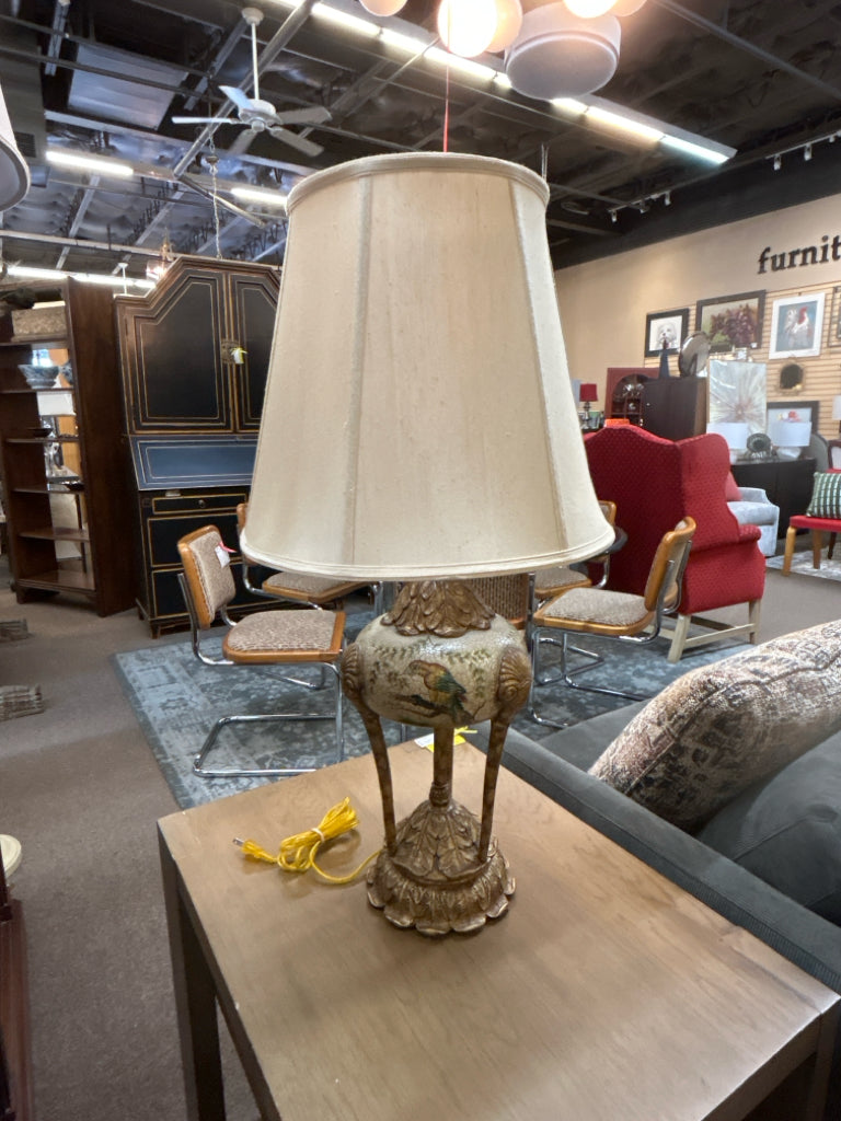 (JRL 6400) Gold Leaves Neo Classical Design 3-Way Lamp Featuring Birds on Branches W/ Shade 31.5" Tall