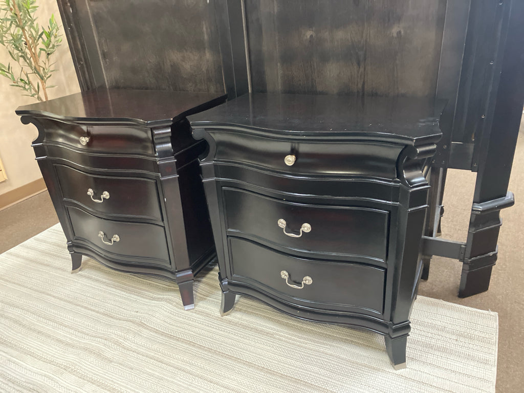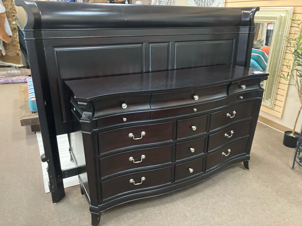 (As-Is Light Scratches) Dark Wood Bed Set HB/FB/Rails/Slats, Dresser, And 2 Nightstands