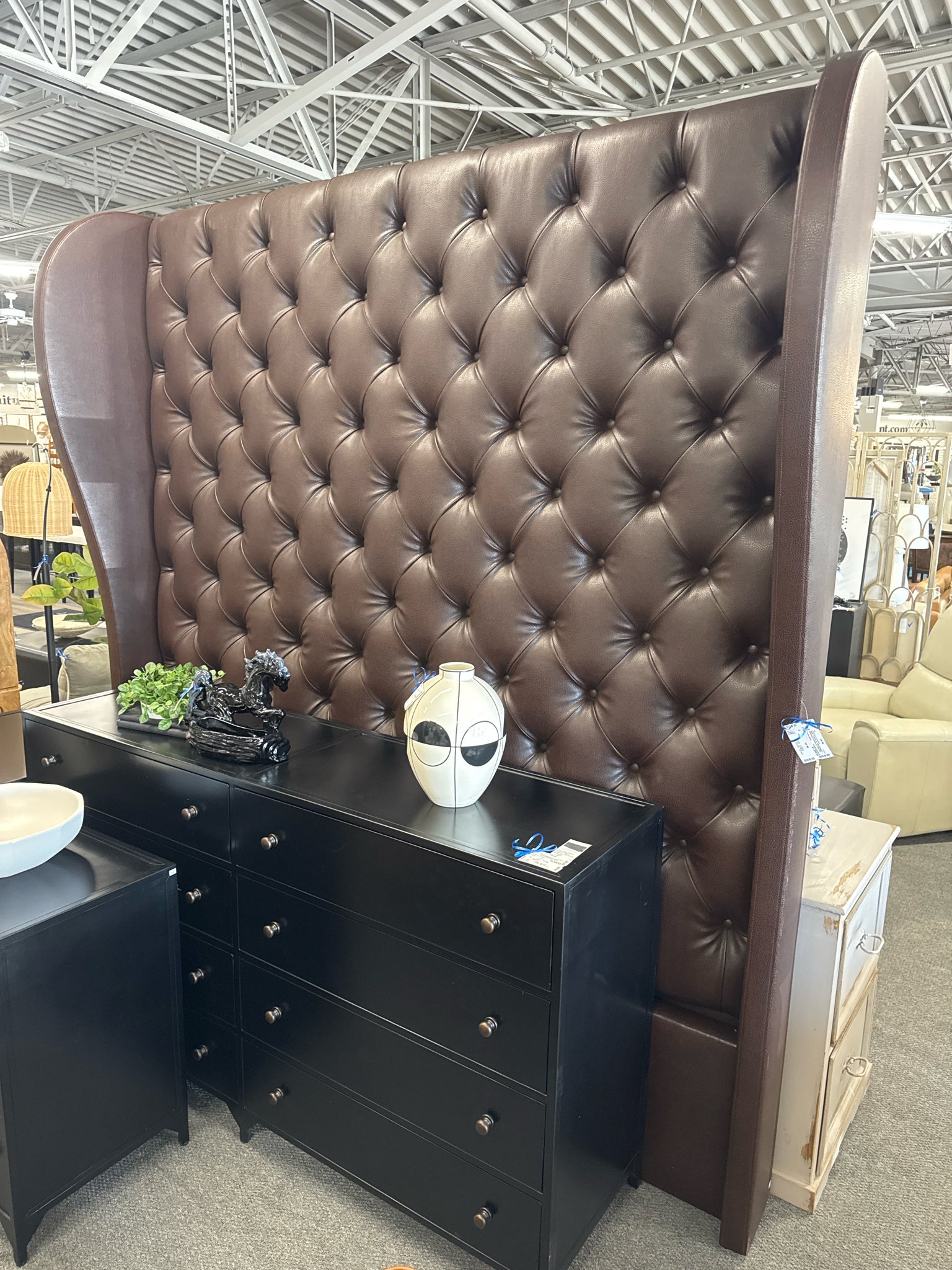 KING 8' Tall Brown Tufted Wingback Headboard/ Footboard w Side Rails