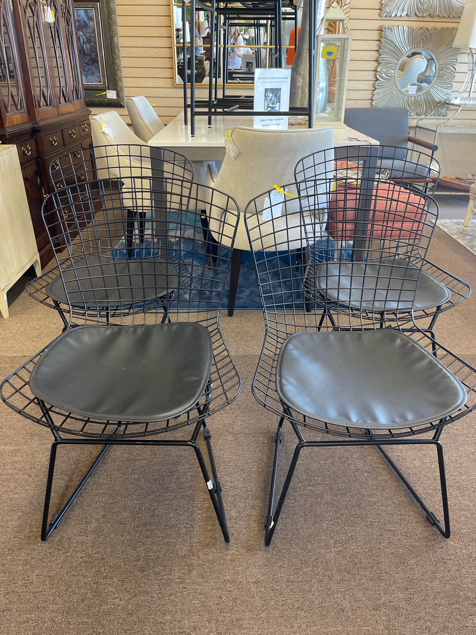 Set of 4 Bertoia Black w/Black Pad