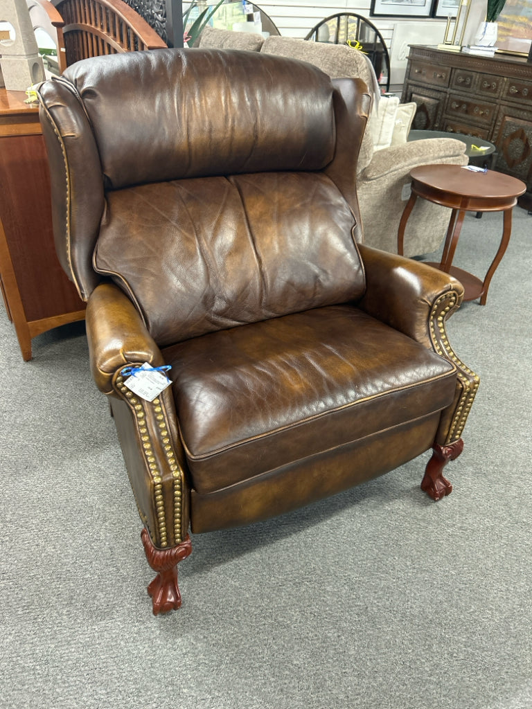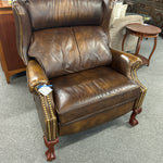 Custom Brown Leather Push-Back Recliner w Nailhead Trim