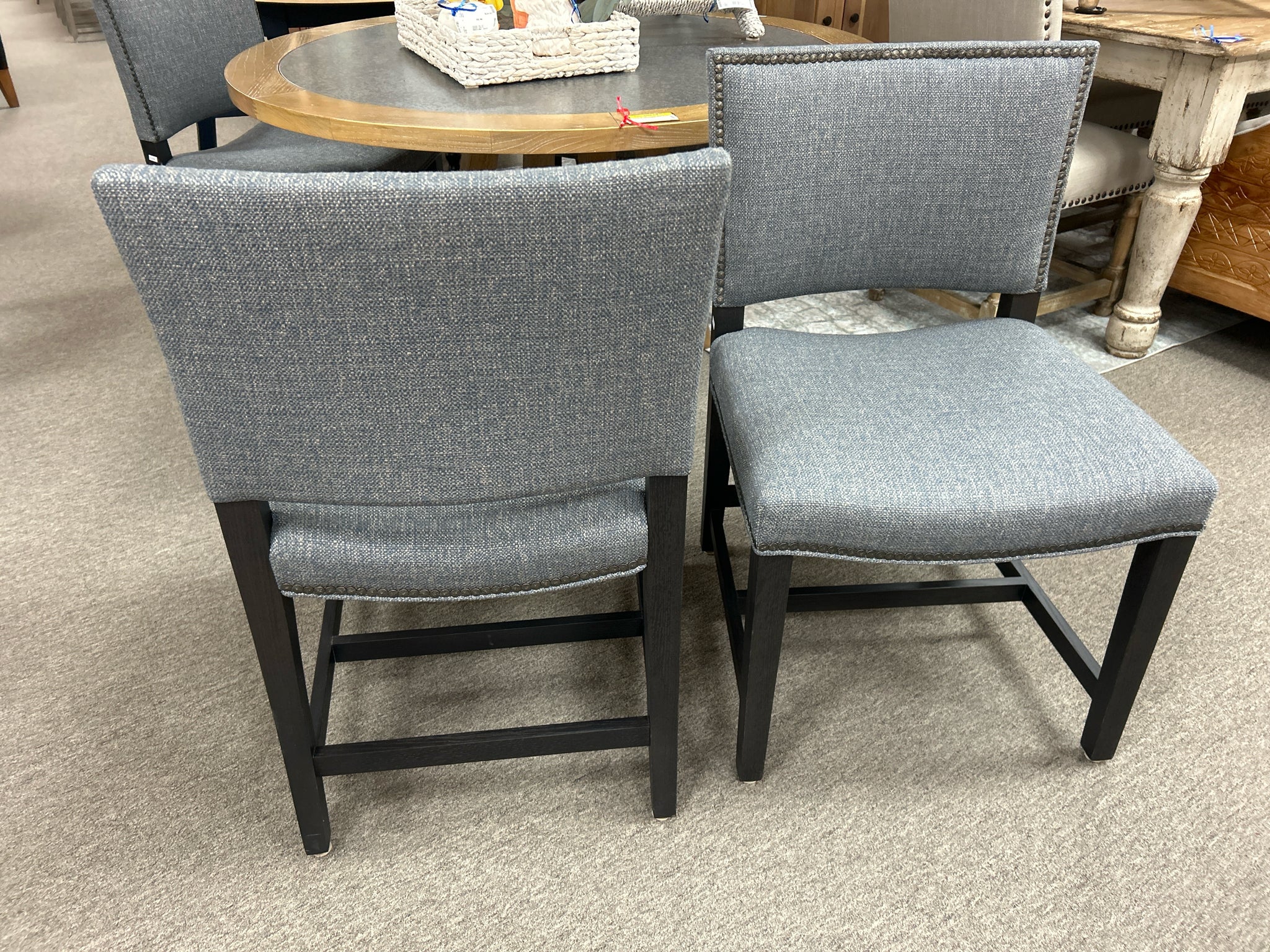 SET of 4- Custom Made Blue Tweed Fabric Dining Chairs. Made in the USA.