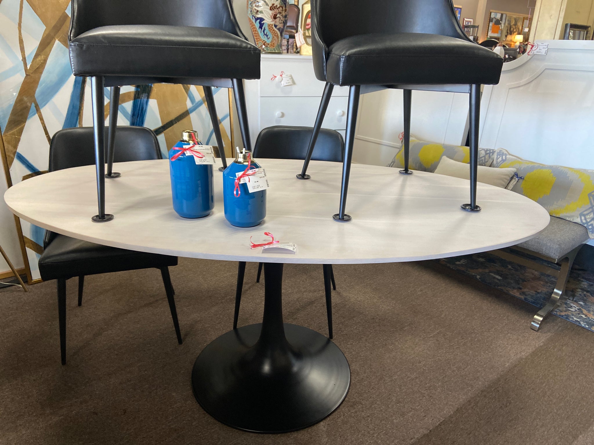 ****Tulip oval white washed dining table w black pedestal base