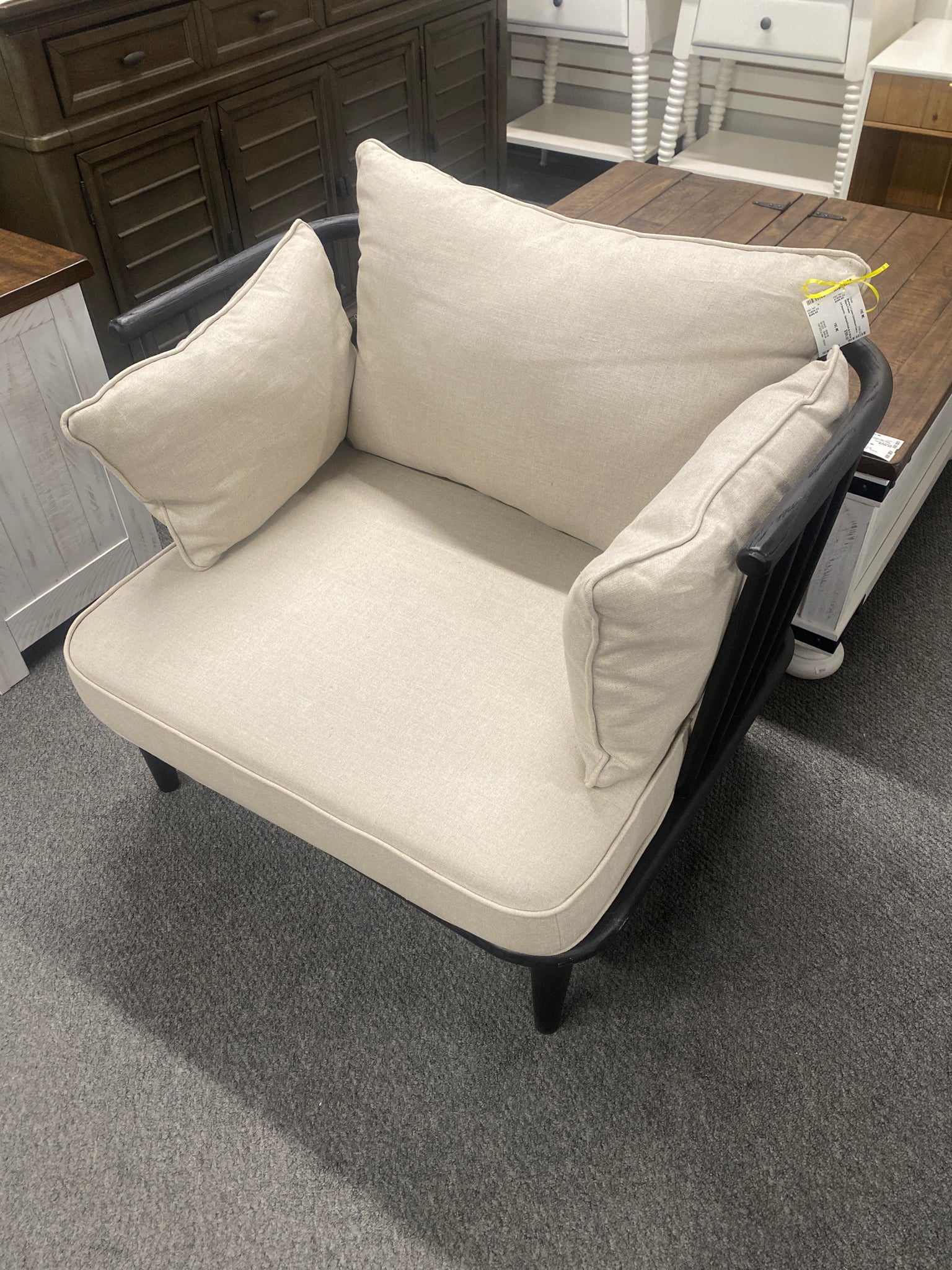 *** Marina Lt Linen Upholstered Chair w Black Frame