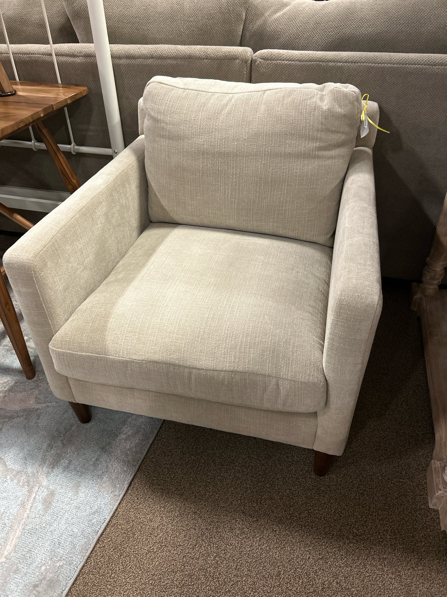 AS IS Gemma Beige Fabric Upholstered with Wood Legs