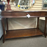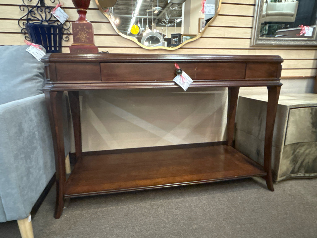 (AS IS) 2-Tier Medium Finish Wood Sofa Table W/ 1 Drawer