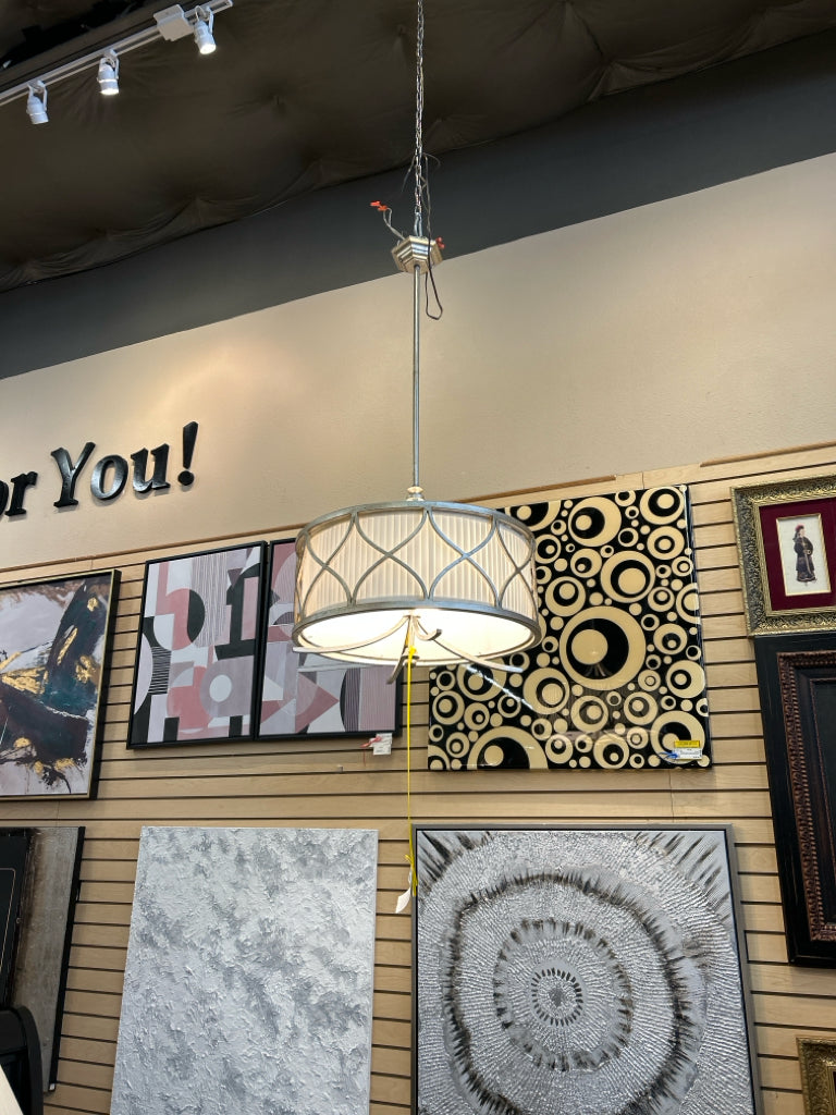 *** 3-Light White Drum w/Platinum Metal Finish 22"Round