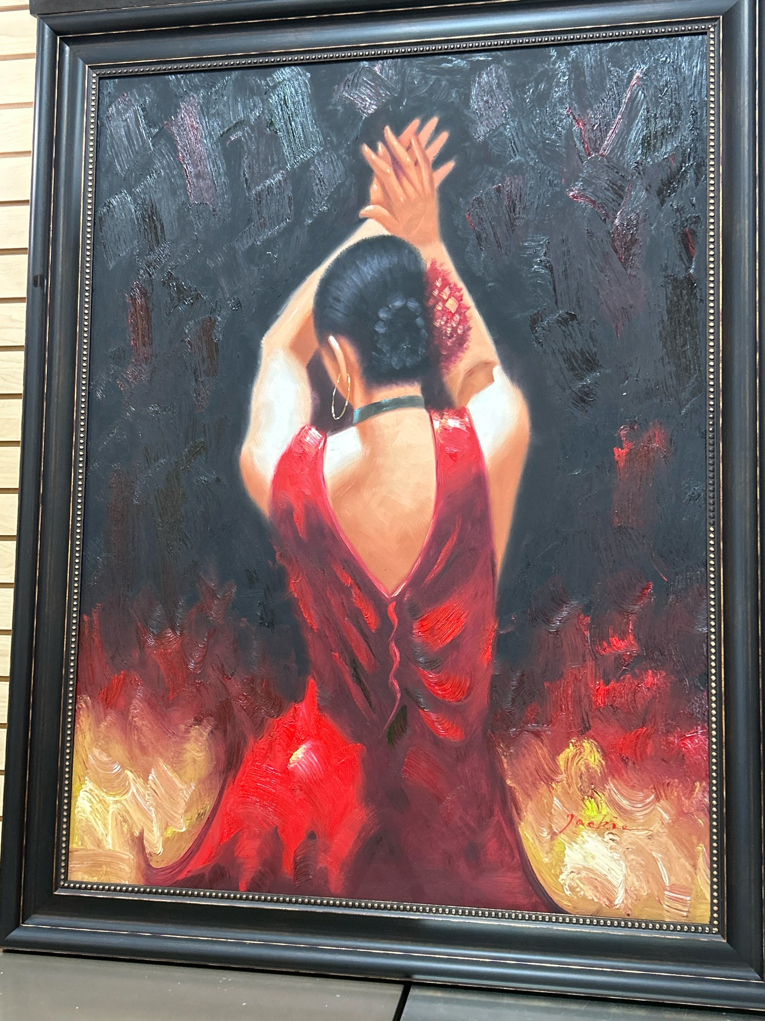 Dancing Senorita in Red Dress in Dark Frame,44" x 56"
