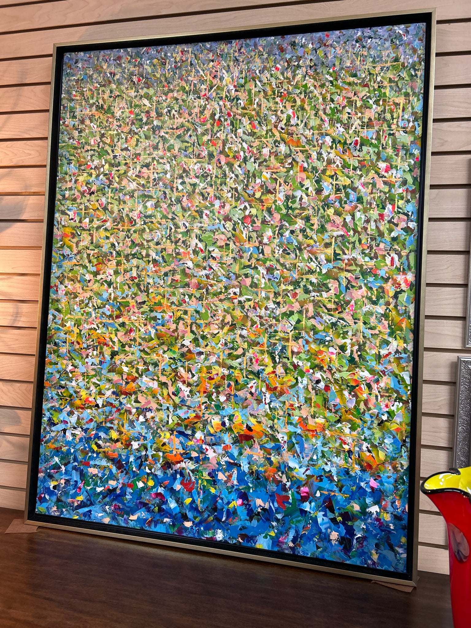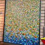 Green-Blue Multicolor Speckled Abstract in Thin Gold/Black Frame - 37.5"x 49.5"