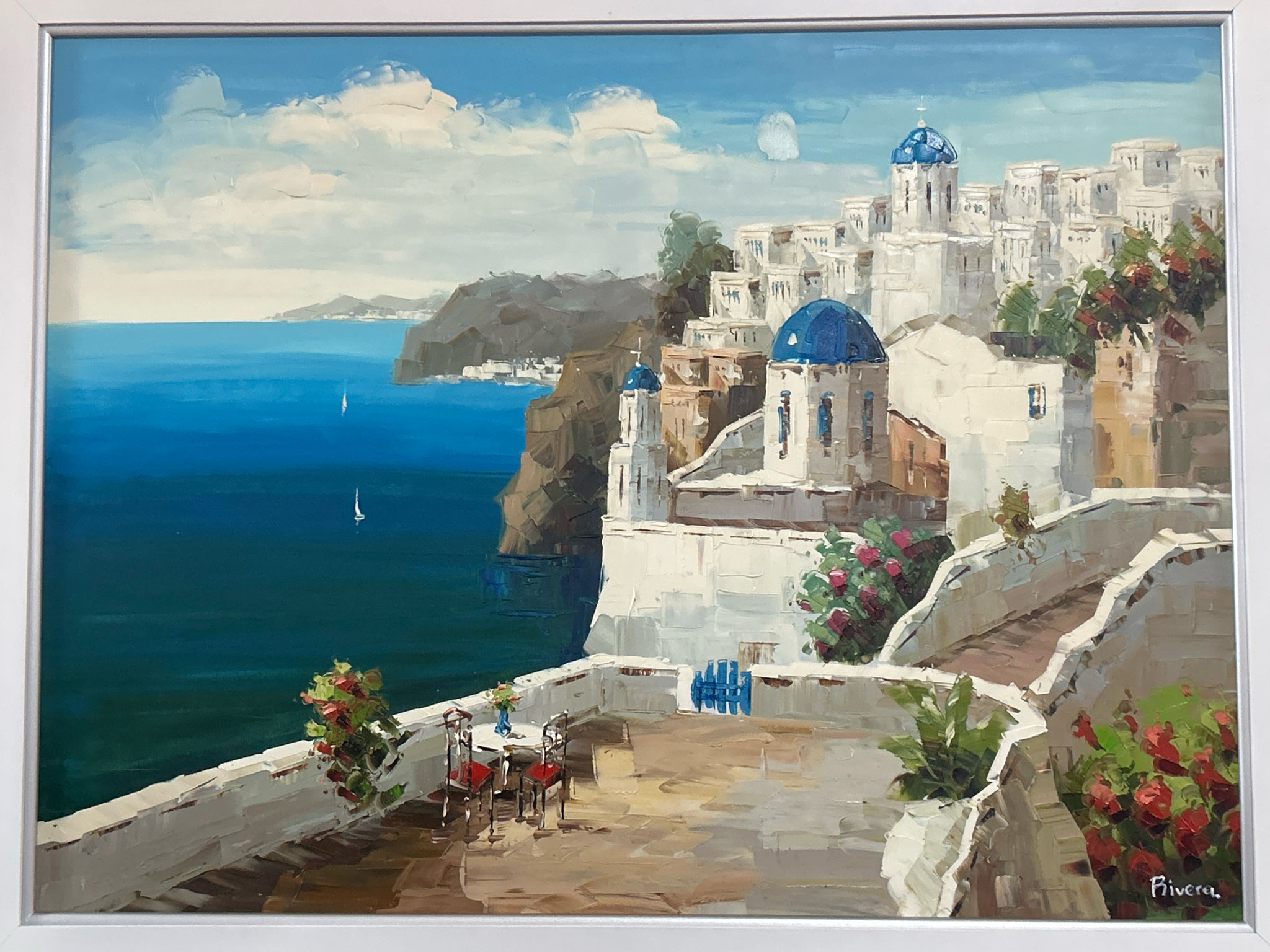 Greek Isle Landscape in White Frame, 44"x 56"