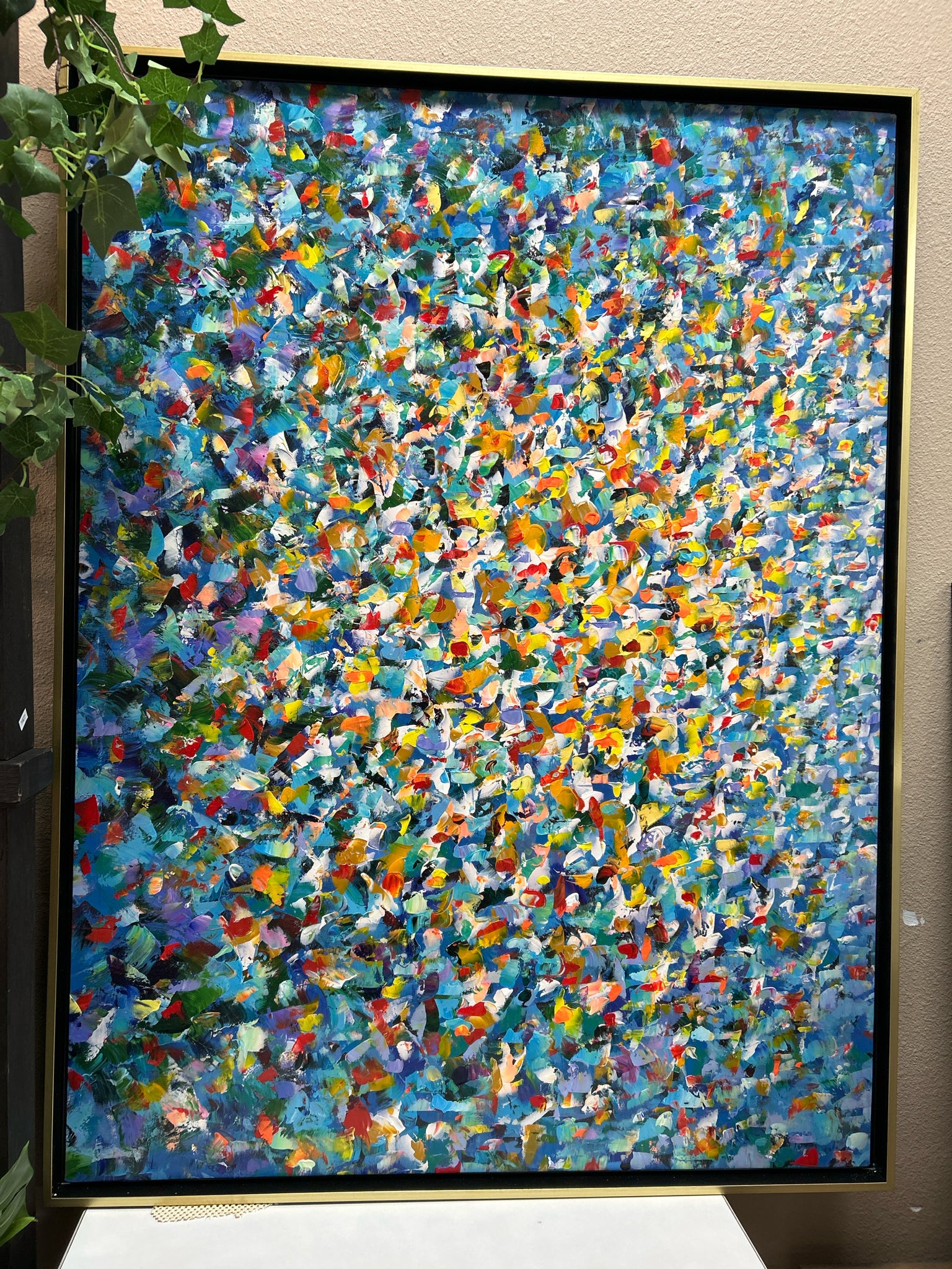 Mod Squad Colorful Blue Abstract in Dark Frame,38" x 50"