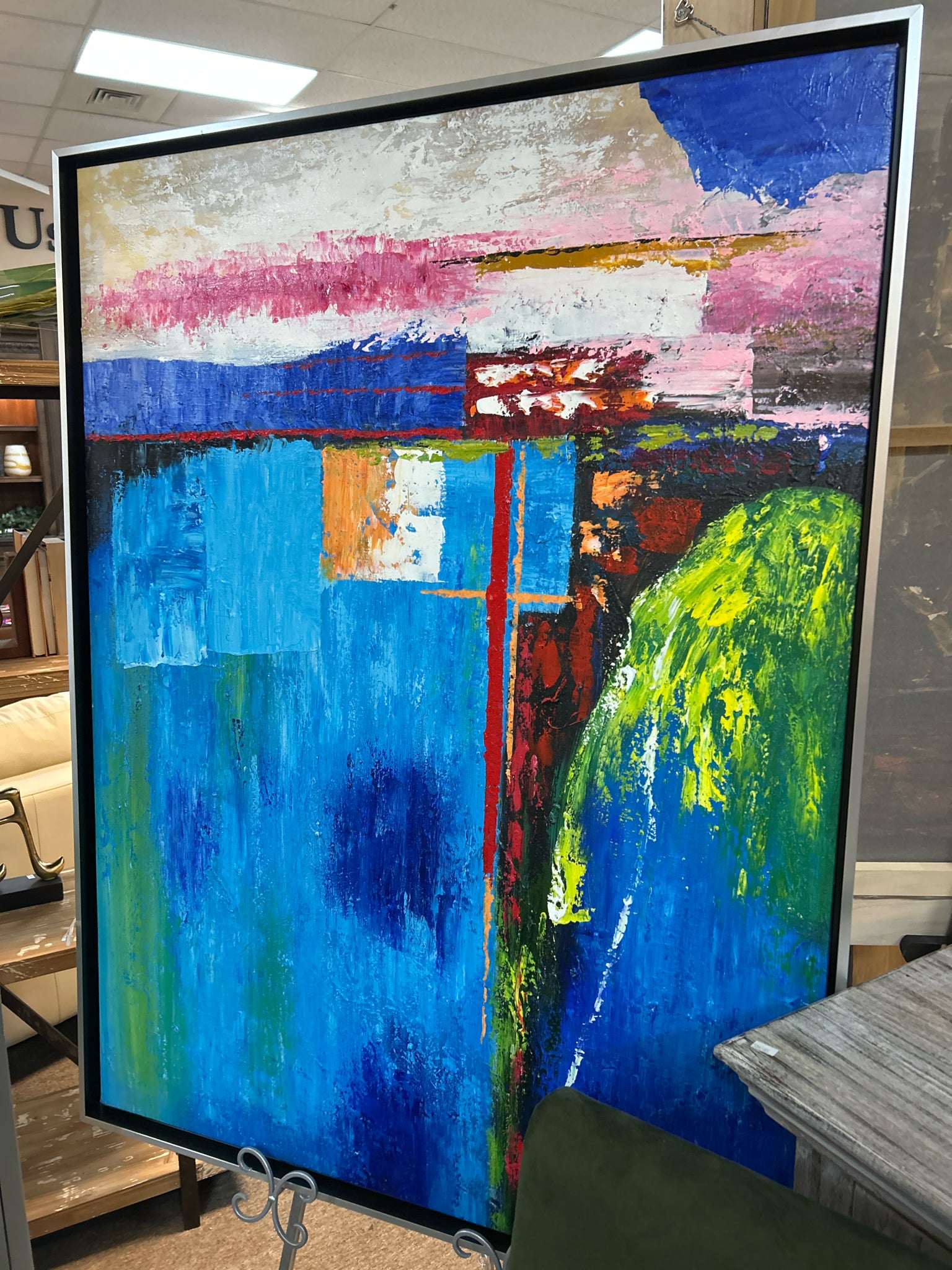 Multi Color Abstract in Silver Frame,38" x 50"