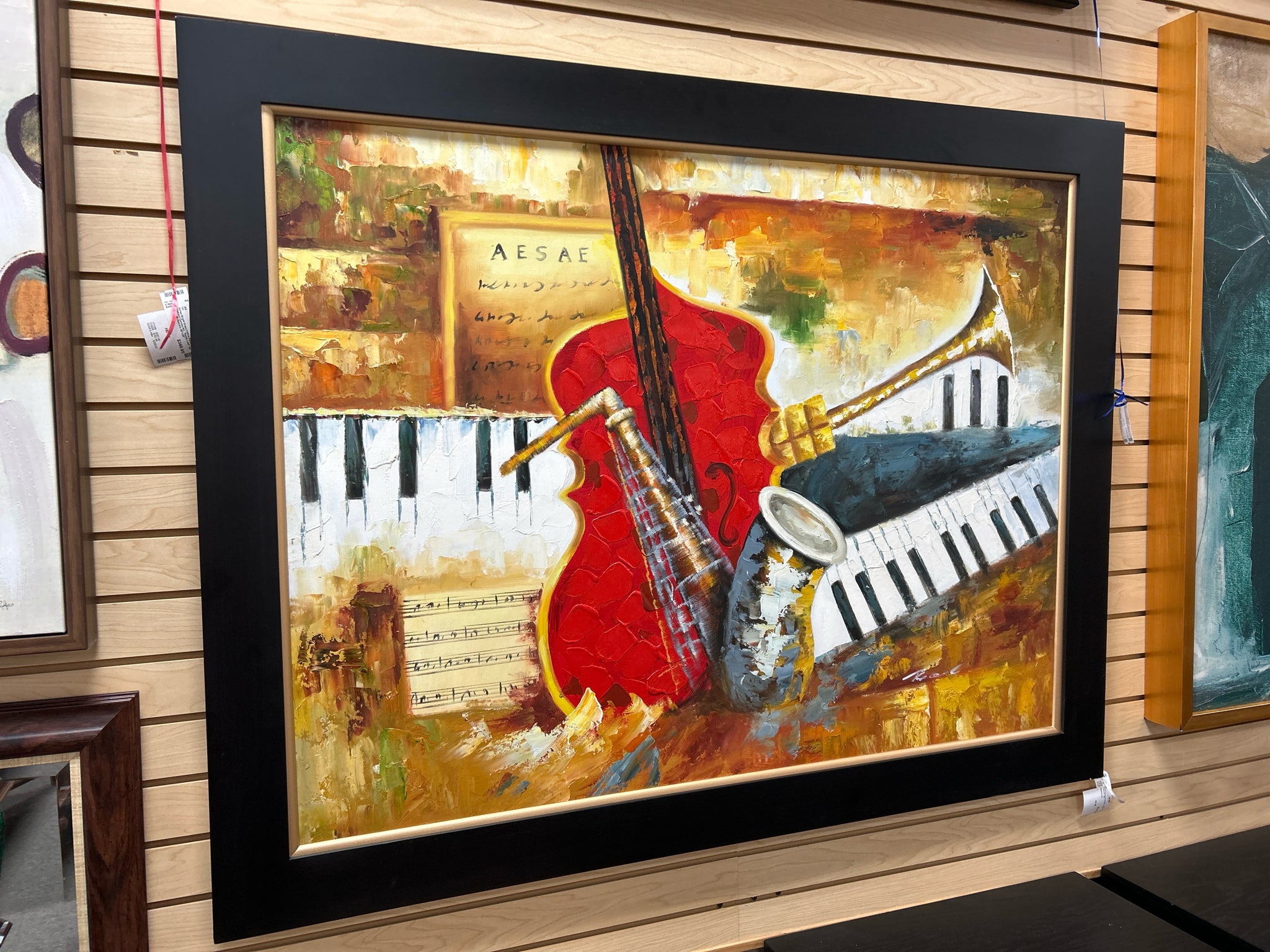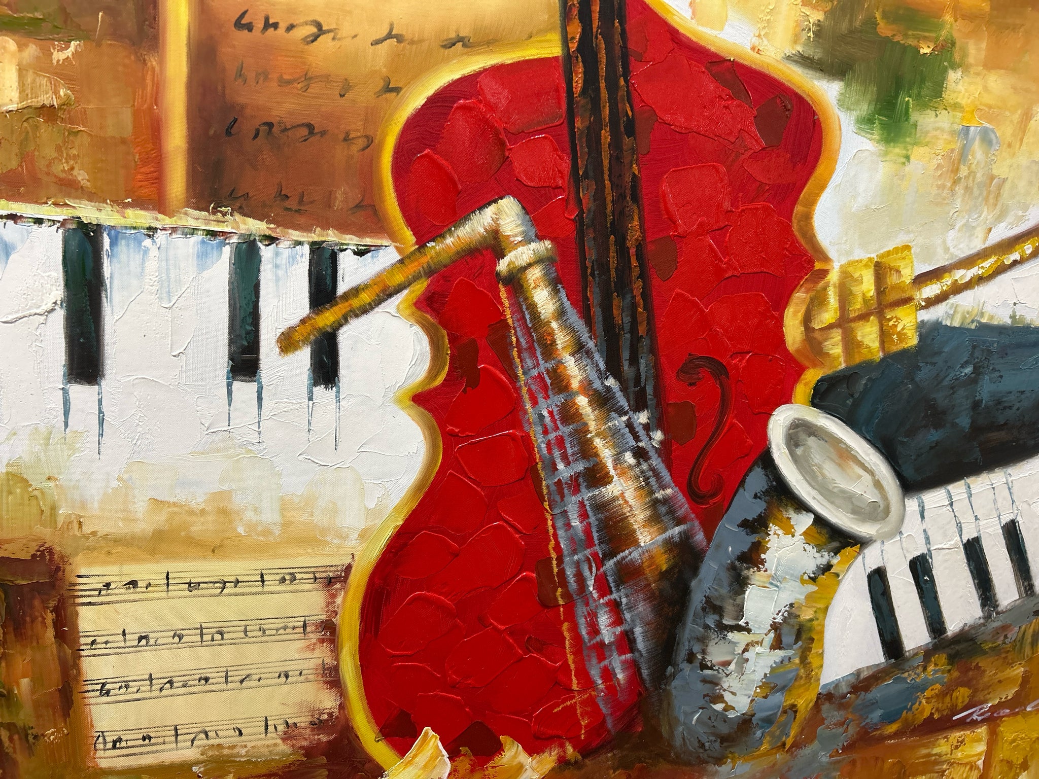 Red/Gold Jazz Ensemble in Dark Frame,44" x56"