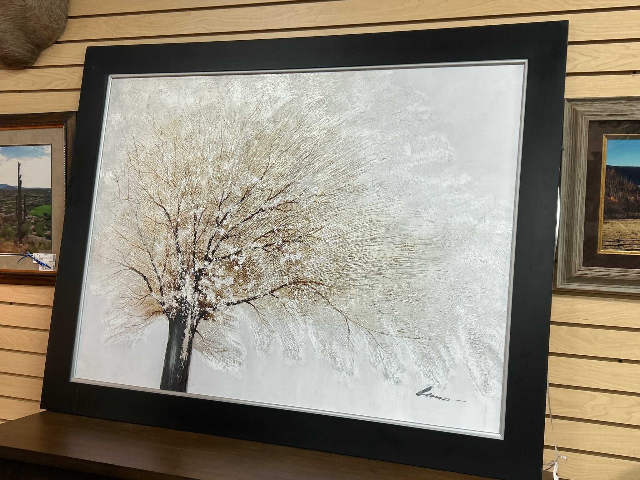 Large Metallic Silver Tree in Black Frame, 44" x 56"