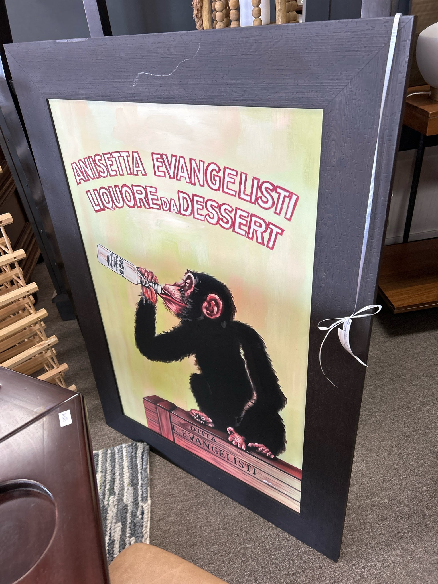 Boozy Italian Monkey in Black Frame,32" x 44"