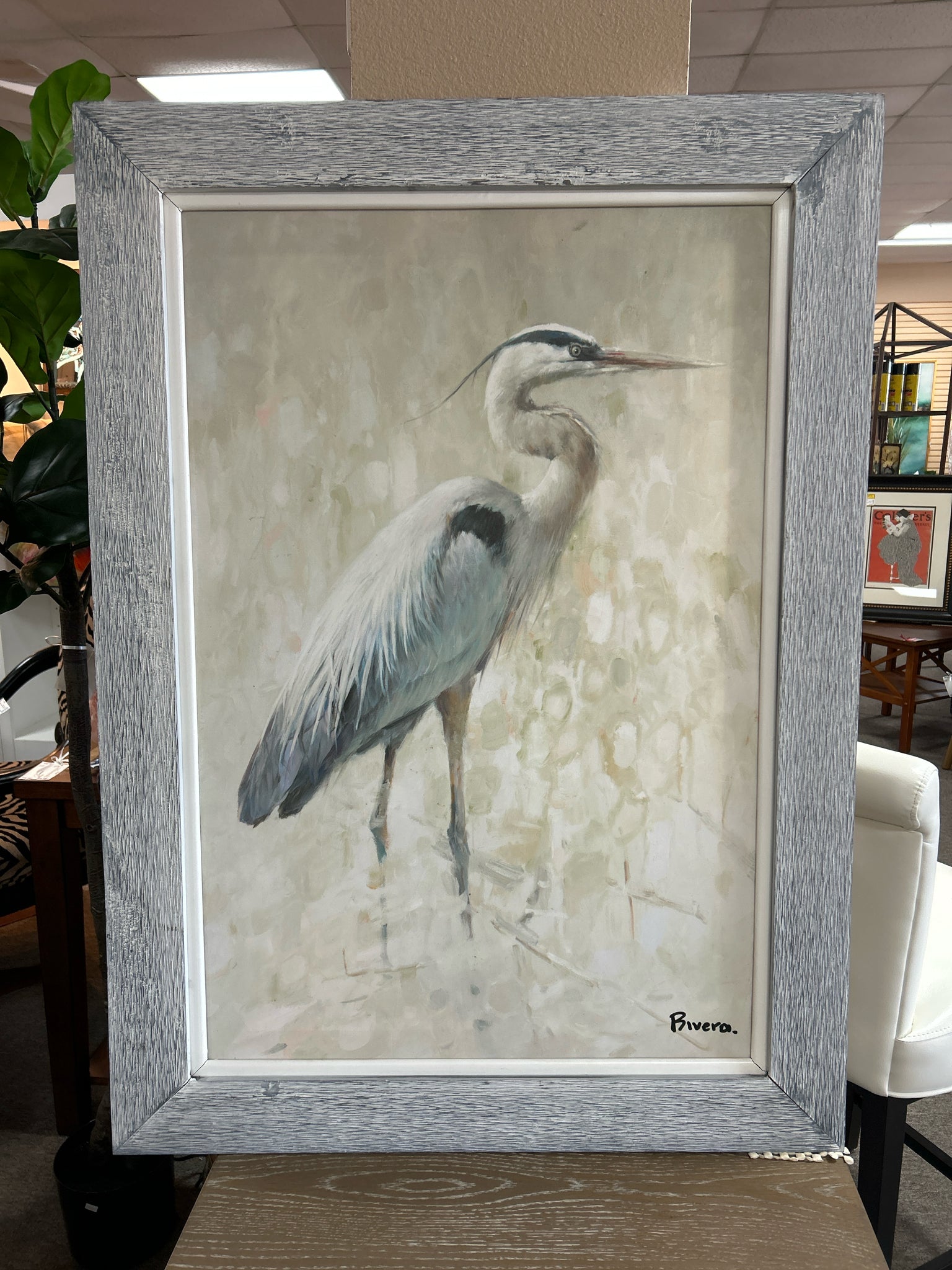 Elegant White Heron in Grey Washed Frame,32" x44"