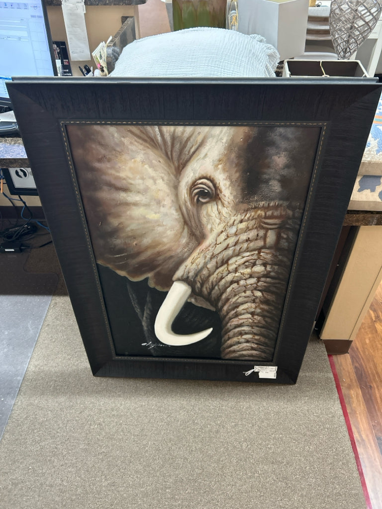 H106 Sisko - Elephant Face in Black Frame 32" X 44"