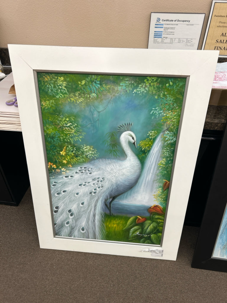 K1172 Sisko - White Peacock In Tropical Setting White Frame 32" X 44"
