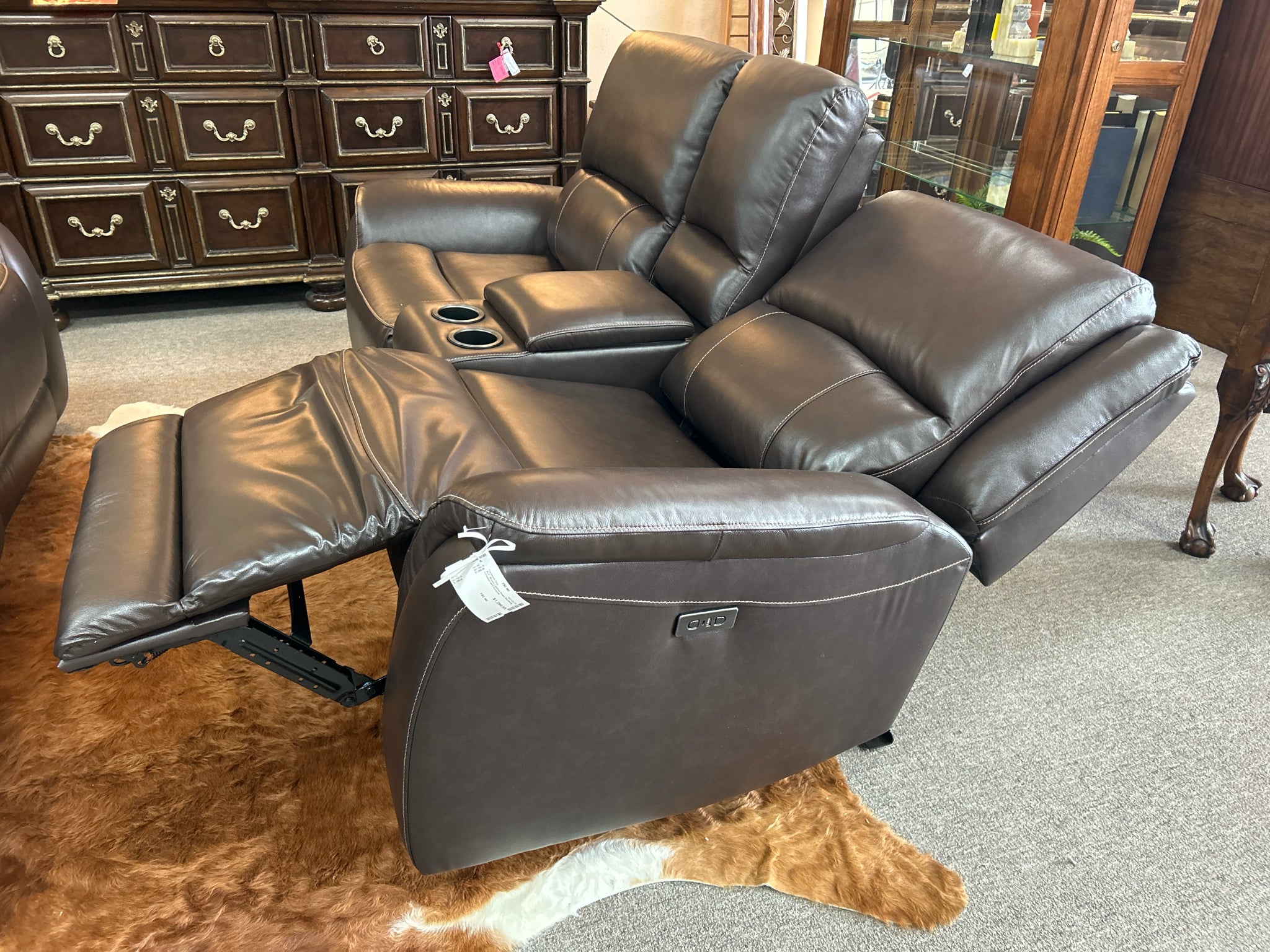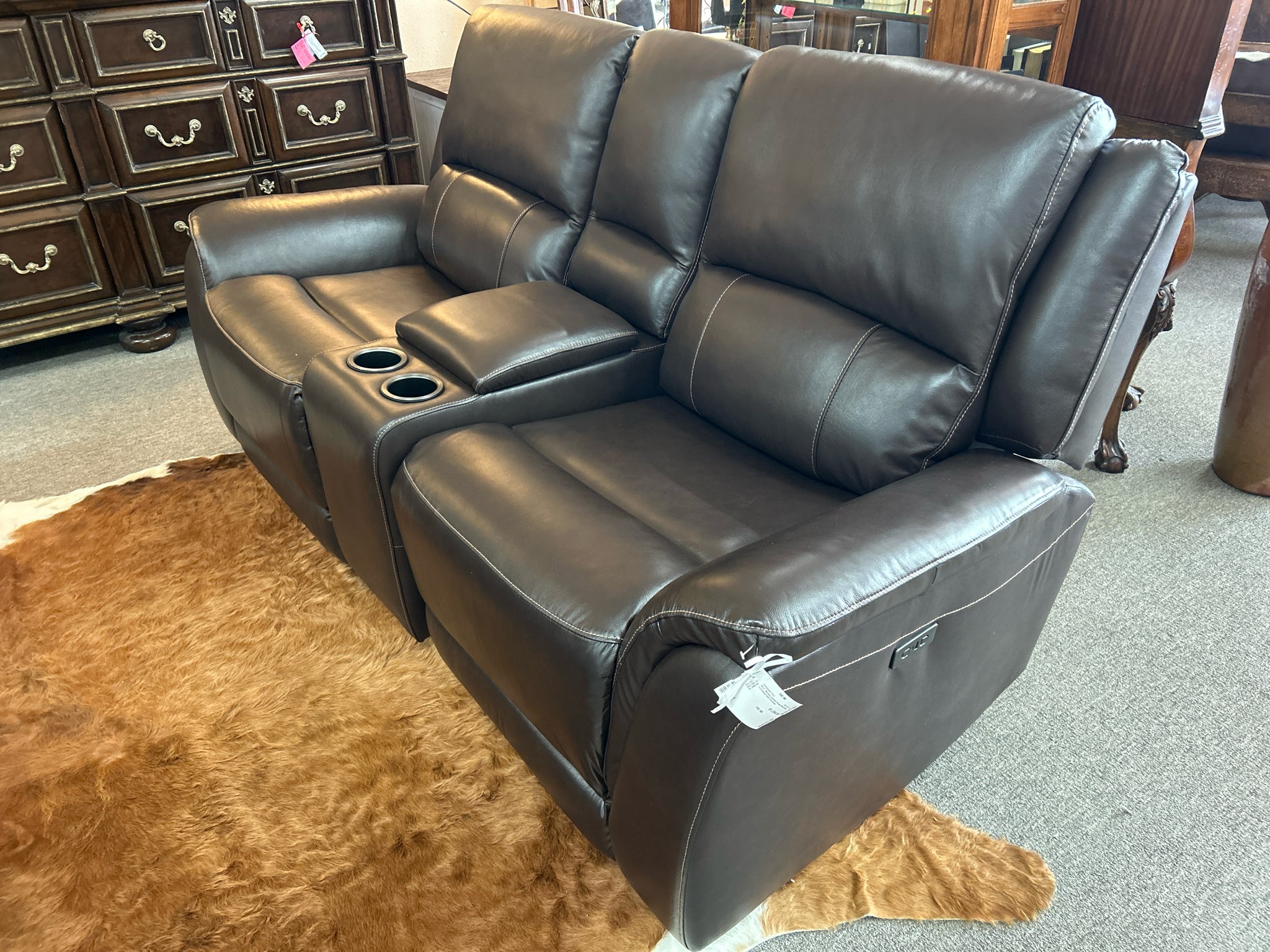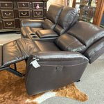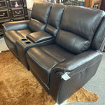 ALX Brown Leather Power Reclining Loveseat with Console