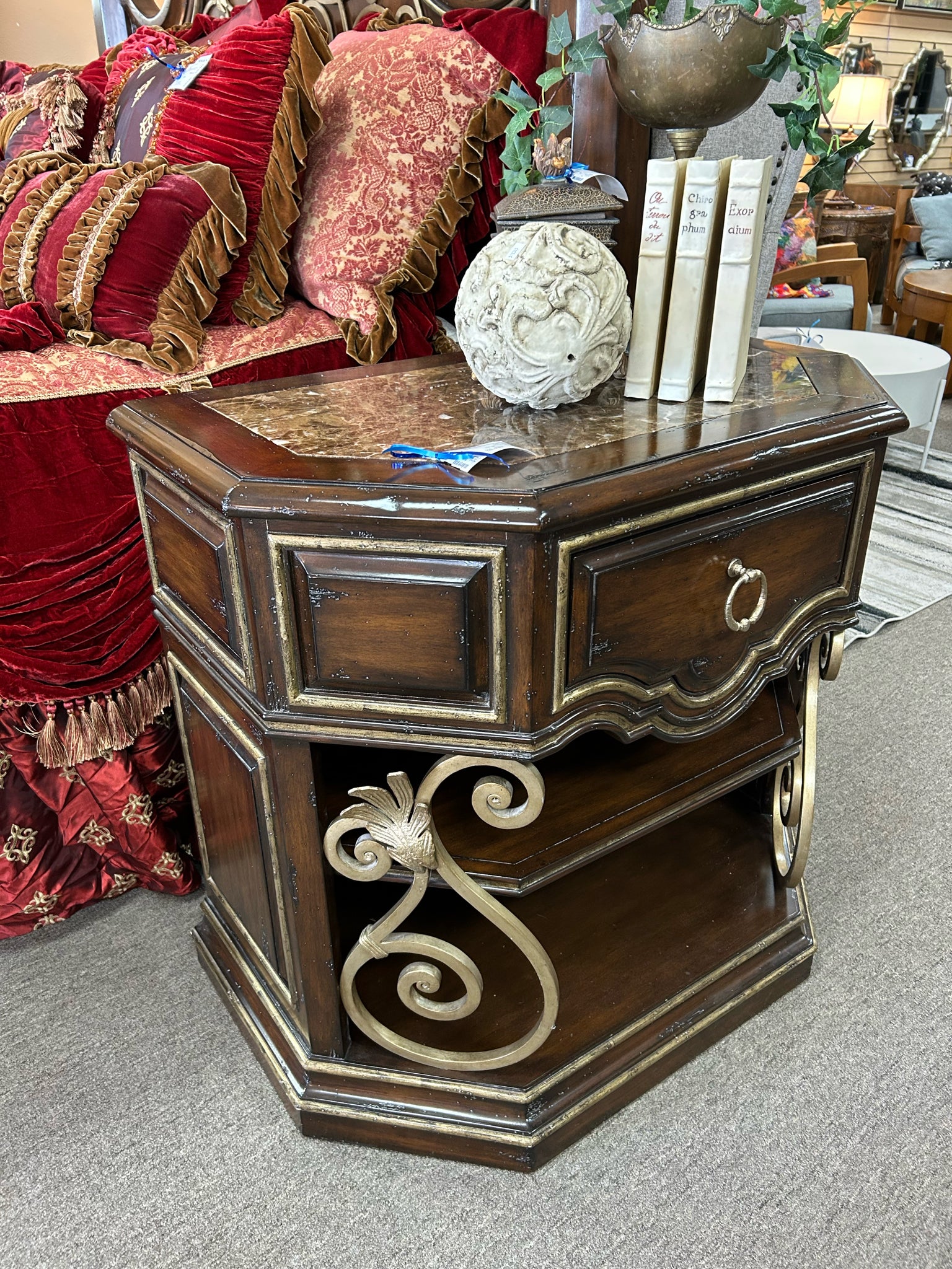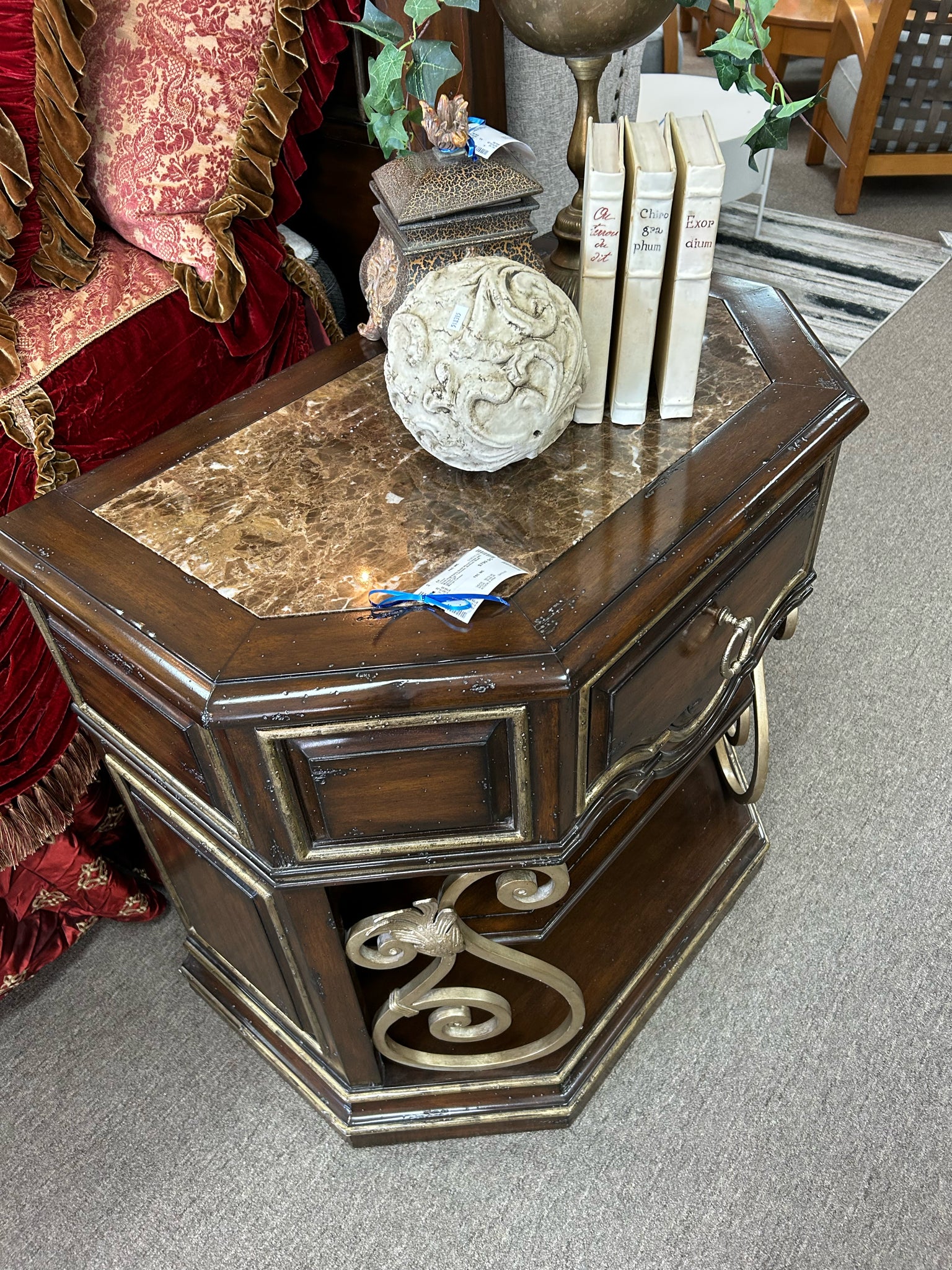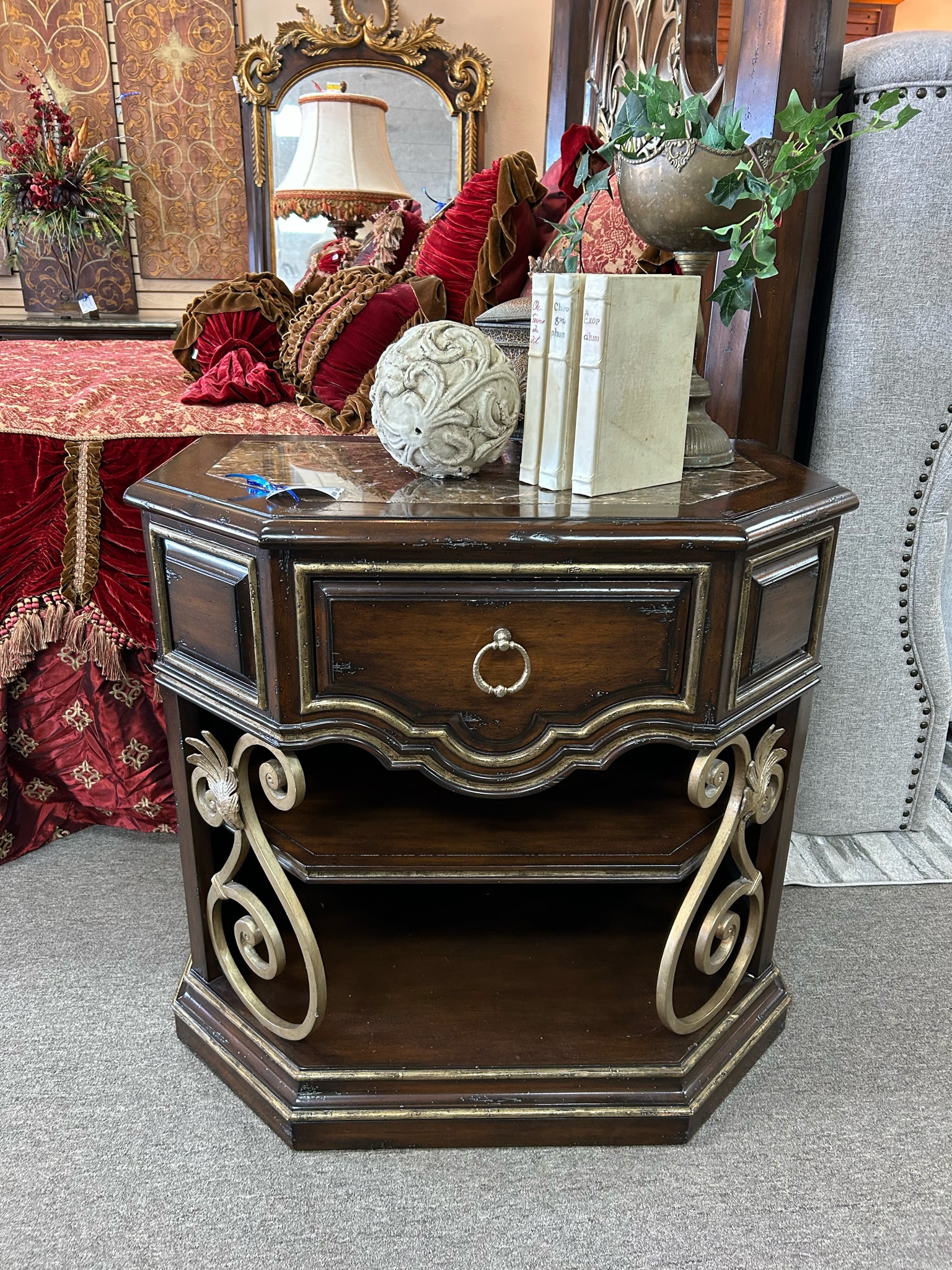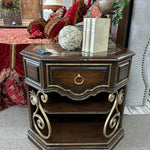 Gold Highlights Solid Wood Chest with Marble Top, 1 Drawer, Bottom Shelf. 36x22x35"