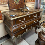 Dark Marble Top Solid Wood Chest with 2 Drawers, Curved Gold Accent. 39 1/2"x20"x34"