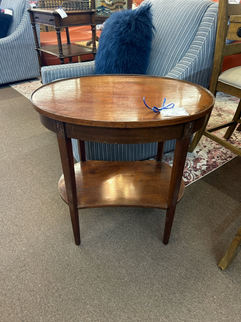 (AS IS) Vintage Mahogany Oval 2-Tier Table