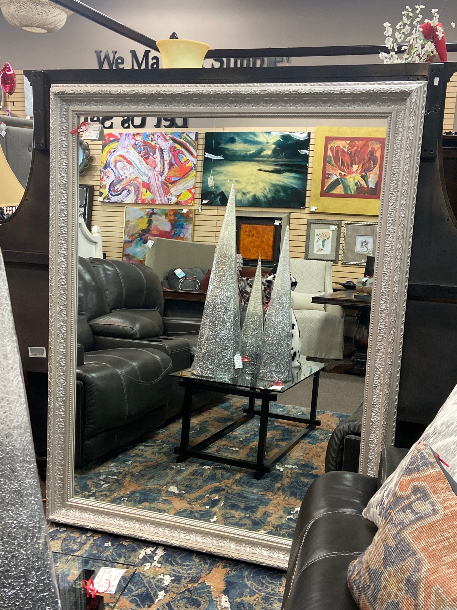 White carved framed mirror 50"x65"