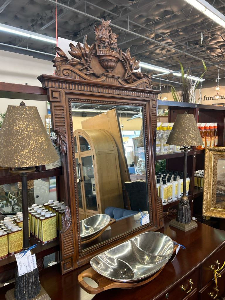 Rectangular Mirror In Ornate Wood Frame
