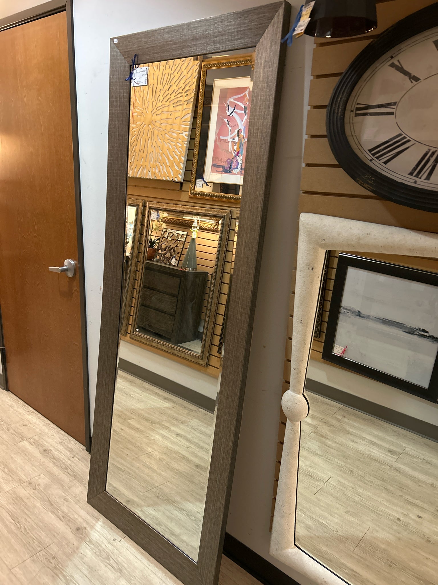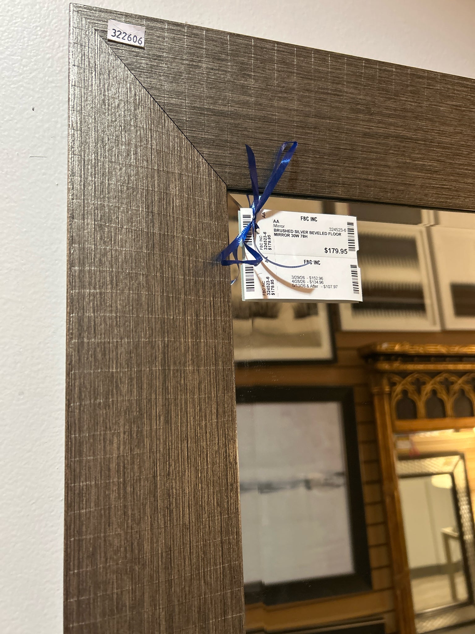 BRUSHED SILVER BEVELED FLOOR MIRROR 30W 78H