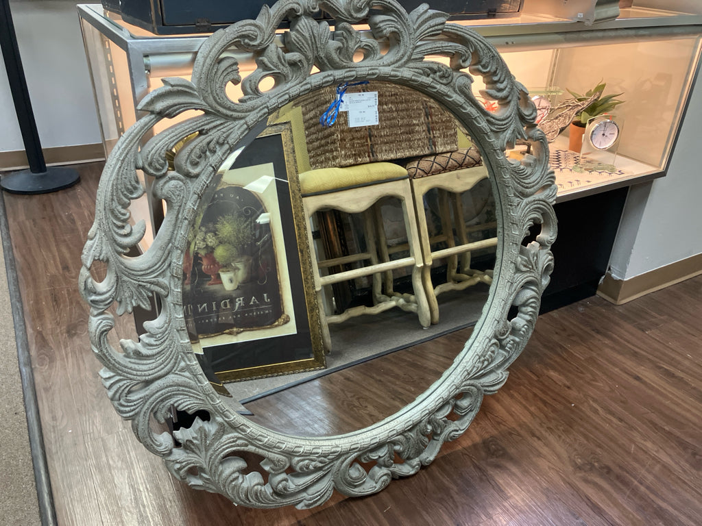 ROUND ORNATE RESIN CARVED BEVELED MIRROR
