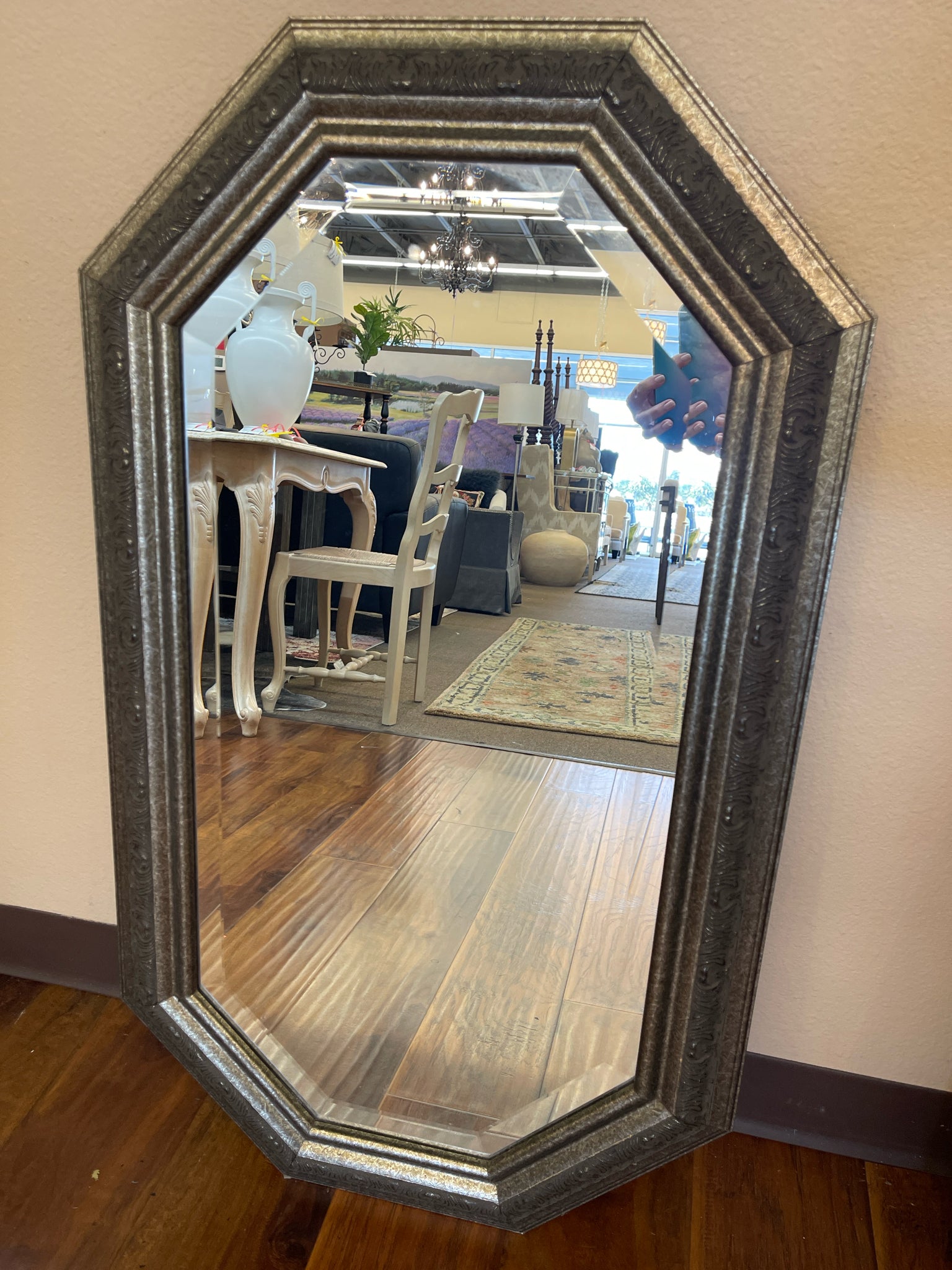 Octagon Shaped Pewter & Black Finish Framed Beveled Mirror38.5"H 22.5"W
