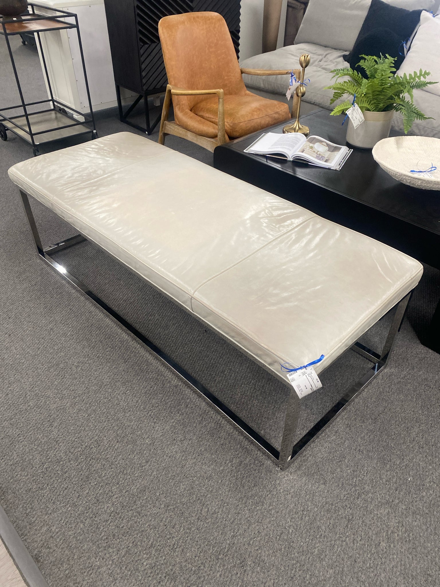 60" Leather Ottoman w Chrome Base AS IS