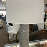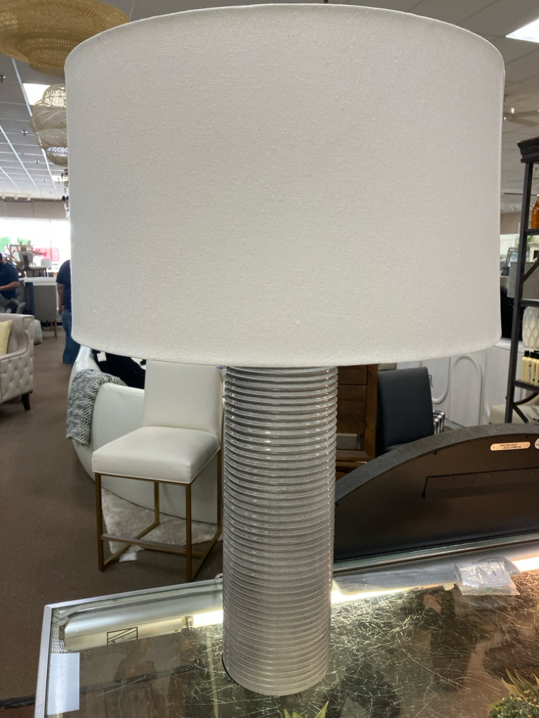 572-76-0062-BRODERICK CERAMIC DEEPLY RIDGED TABLE LAMP W/ WHITE SHADE 32'W 21'H 21D 3-WAY