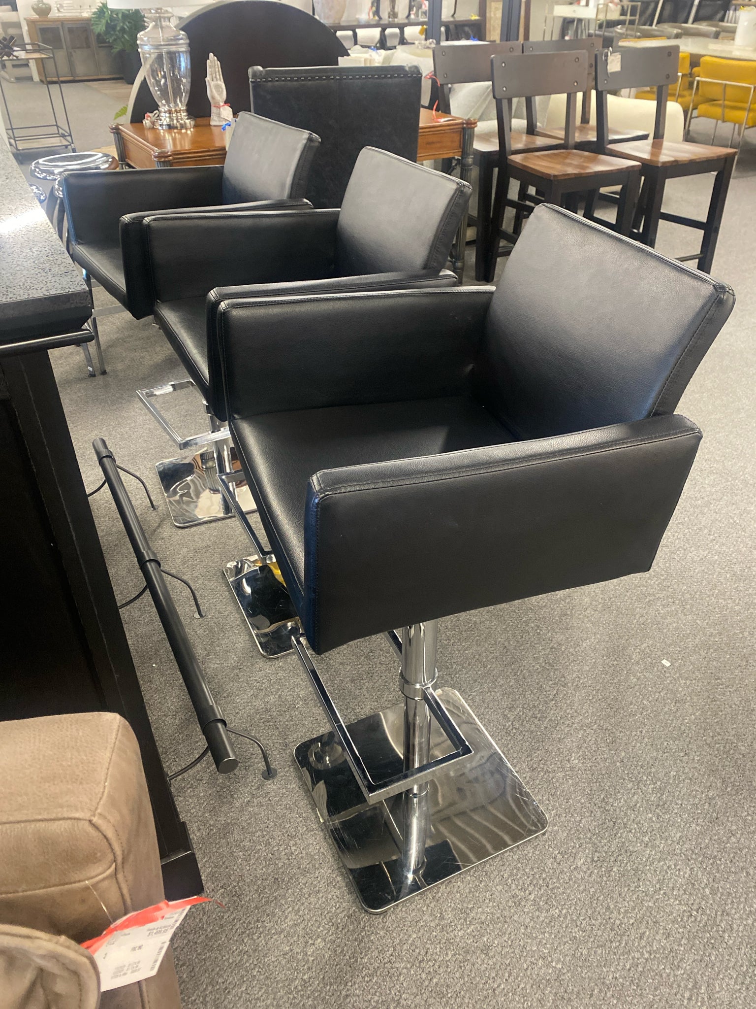 Set of 3 Black Adjustable Counter/Bar Height Stools with Chrome Base 22" - 32"