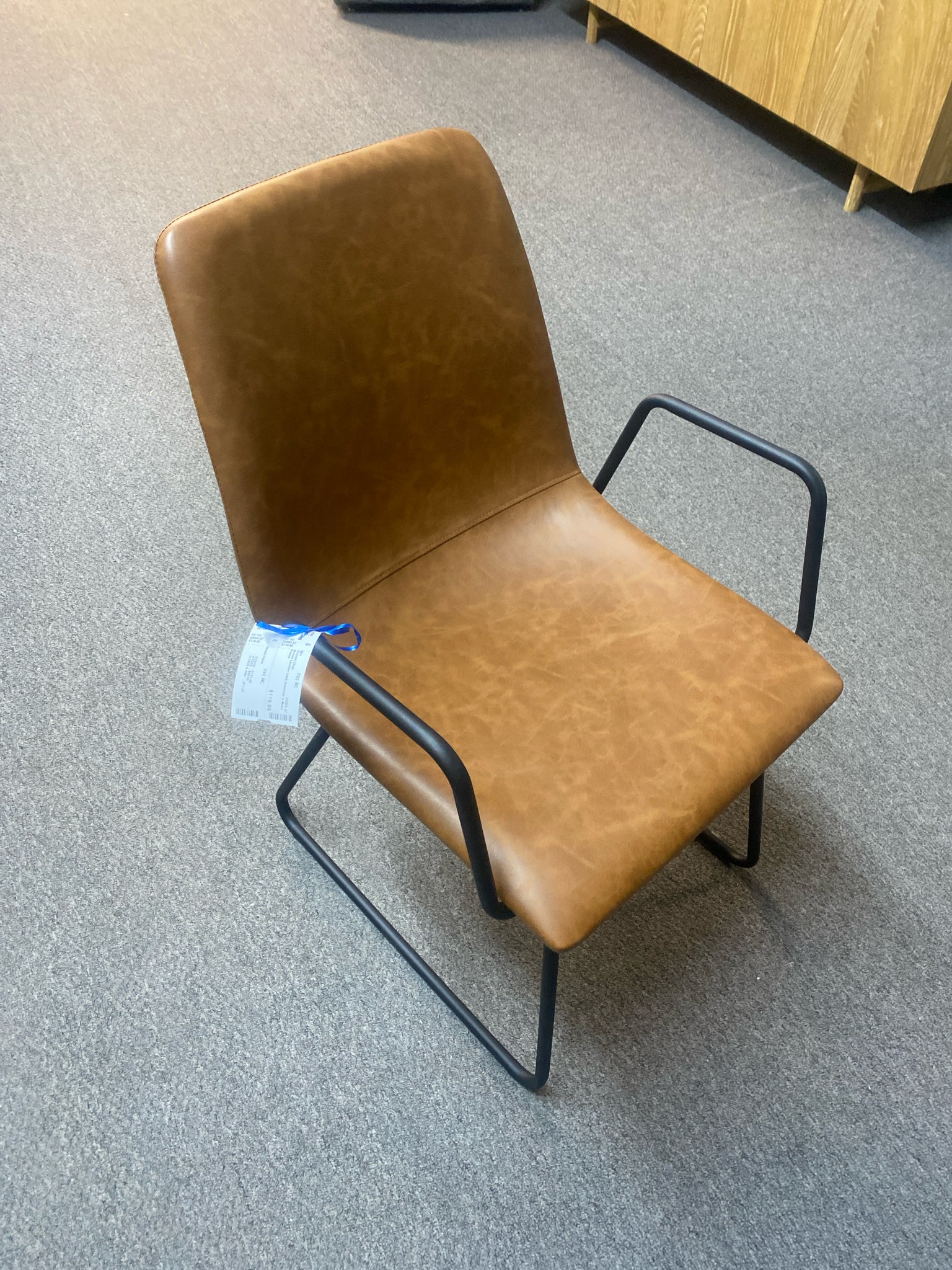 Brown Leather Look Armchair w Metal Frame