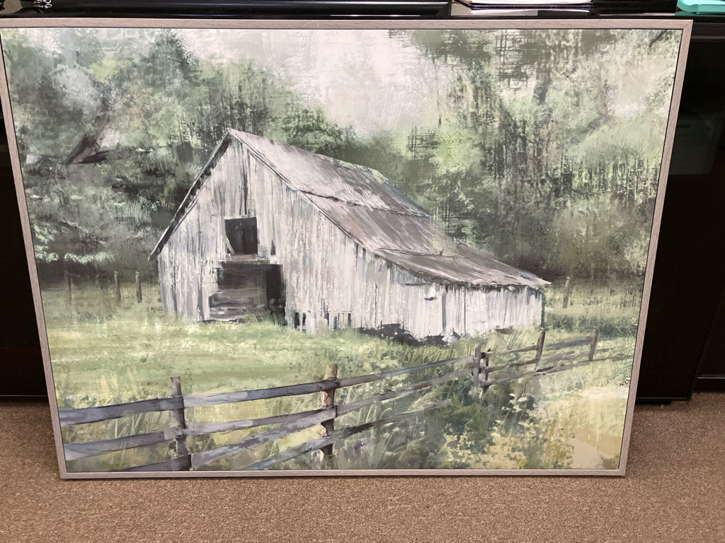 GRAY FRAMED OLD BARN CANVAS ART WORK 41"W 2"D 31"H